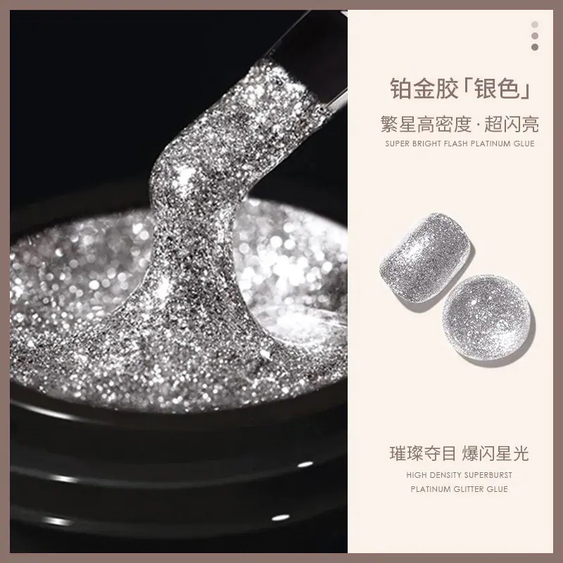 スター高密度きらめくファイングリッターシルバースパンコールプルラインフックエッジカラフルなペインティング マニキュアフォトセラピージェルネイルアートネイルポリッシュネイルサロン