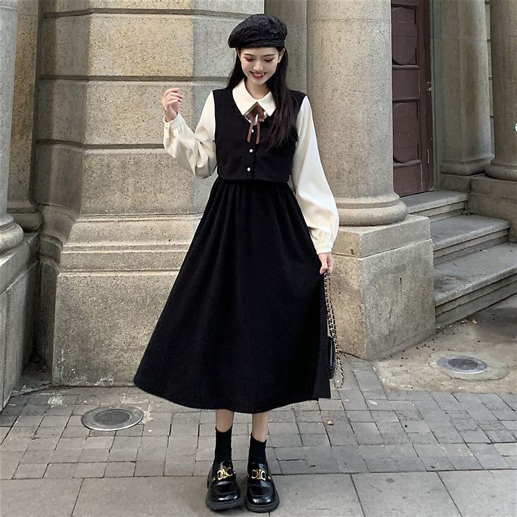 セットアップ 涼しく楽ちんセットアップ 韓国ファッション 春ジャケット制服 秋 偽 2つ 長袖 ワンピース 女装秋冬 新型 フランス式 復古 気質は腰 スカートを収めます通勤