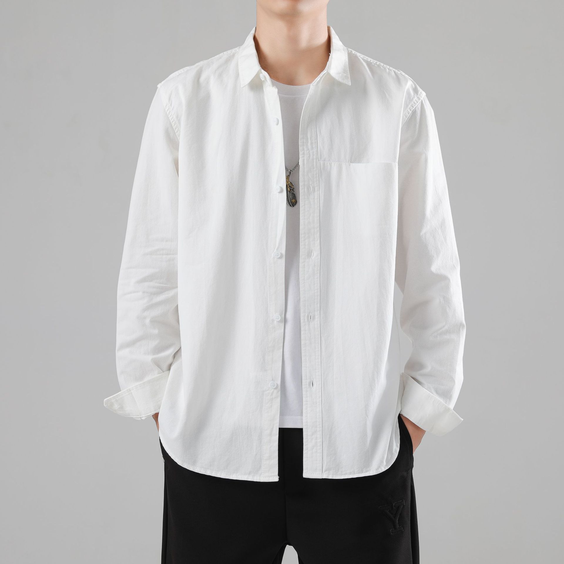 韓国 ブラウス メンズ 長袖 春新作 長袖シャツ メンズ 通勤 シンプル カジュアル ジャケットメンズファッション アウター オフィス シャツ