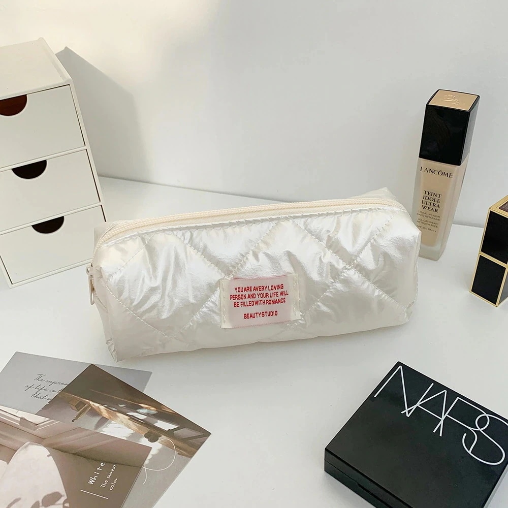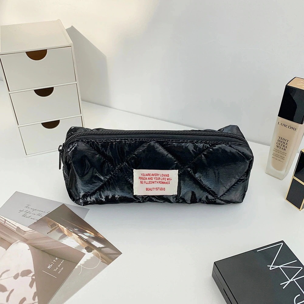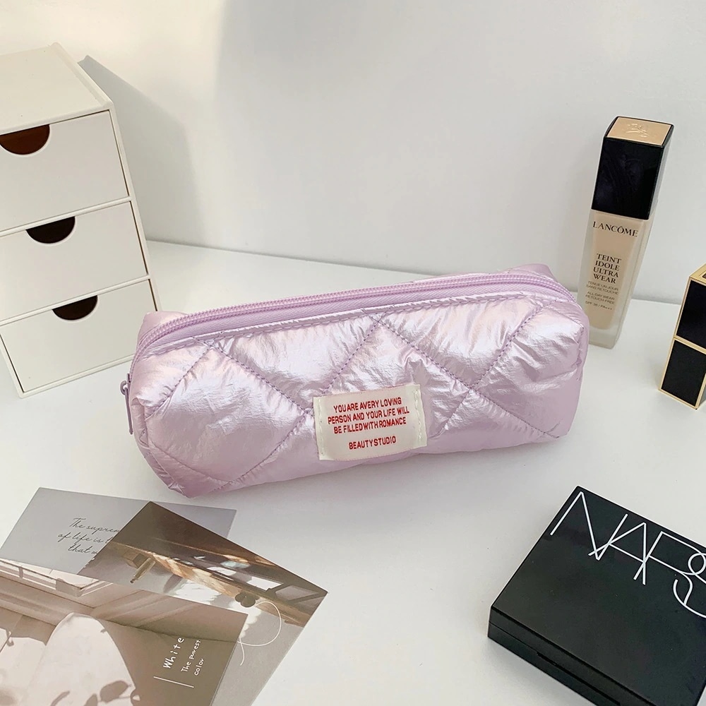 筆箱 ペンケース キャラクターキルティングペン袋学生ダウンジャケット生地鉛筆袋ビーズ光色文具収納袋女性 ペン立て シンプル 高校生 文房具バッグ