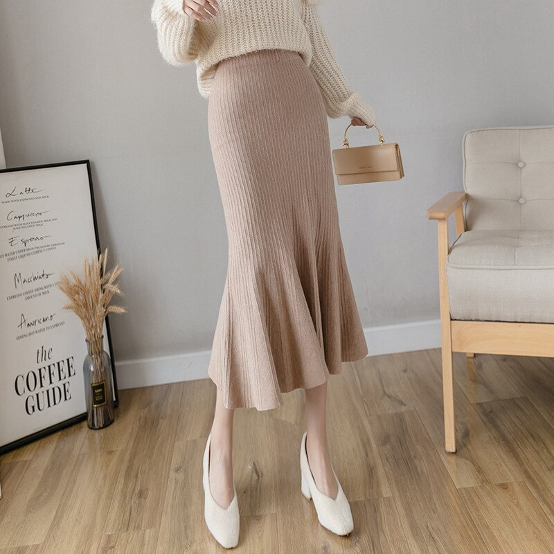 ティアードスカート マキシスカー プリーツスカートマーメイドスカートタイトスカートタイトスカート秋の新作ニット半身スカート韓国バージョン中ロングスカート着痩せ