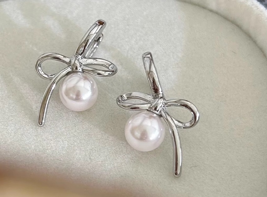 純銀リボンパールイヤリング女2025新爆金高級感ピアス軽量小人数耳アクセサリー