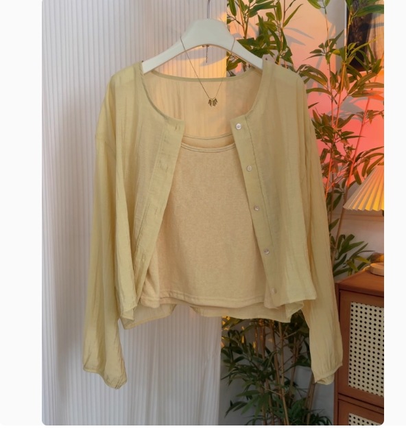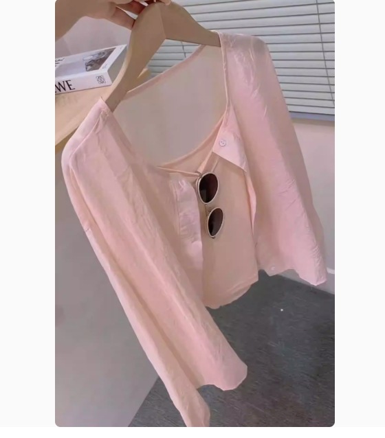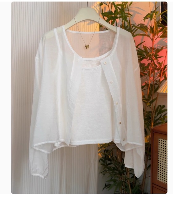 2025夏のフレンチシックで優しい風ピュアカラーシンプルでおしゃれなオールインワンブラウス2点セット