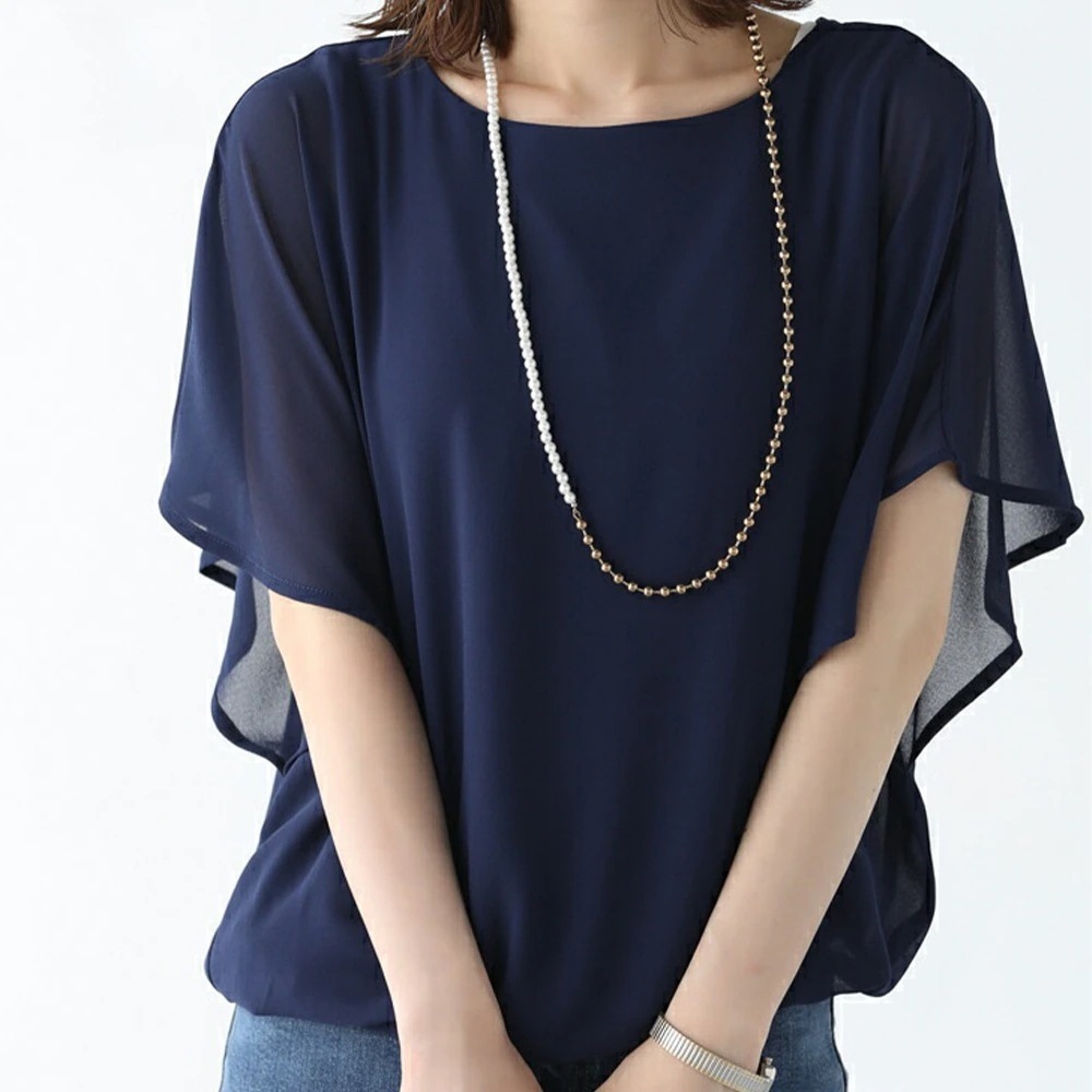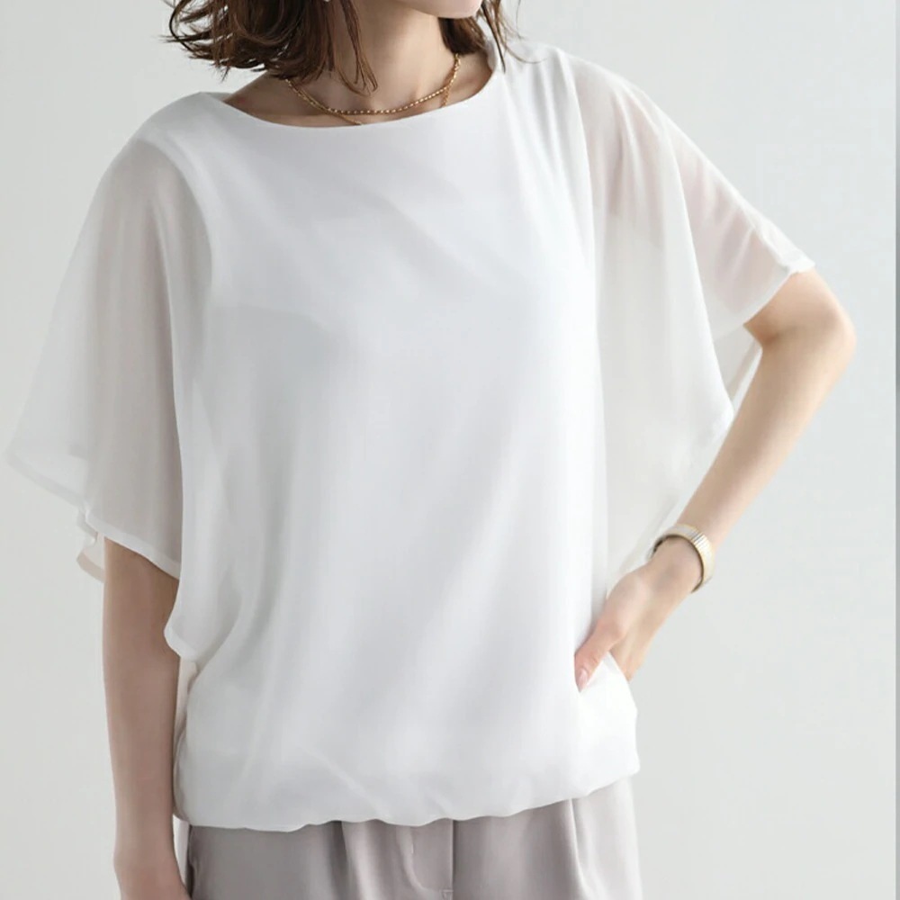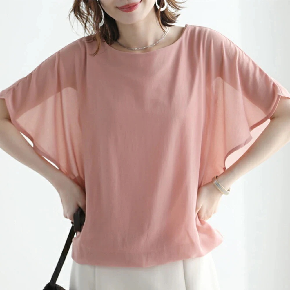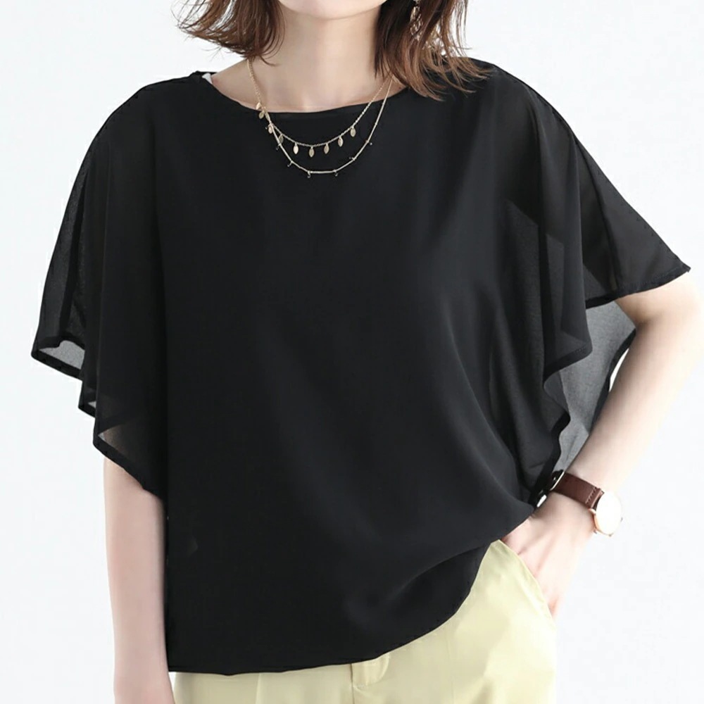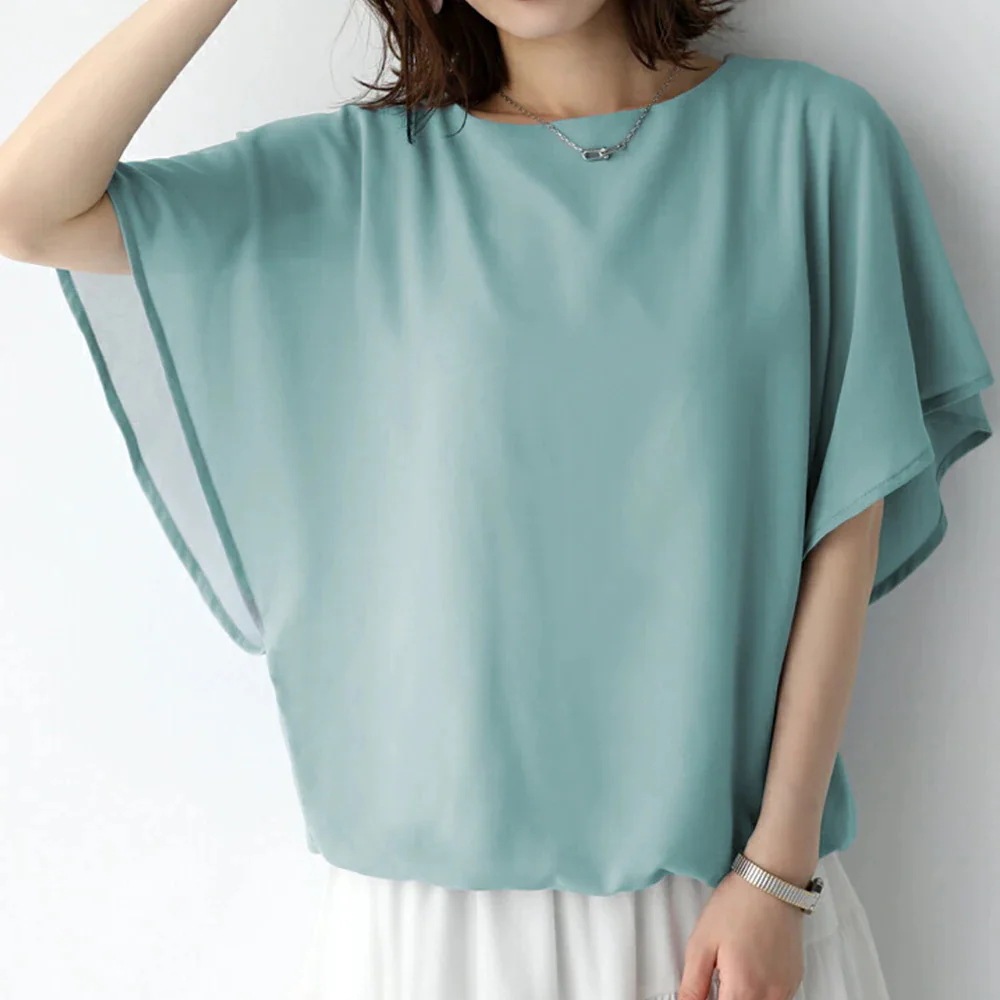 【本日限定】半袖 ドルマンデザイン ドルマンデザインでゆるっとしたフォルムシフォントップス シフォン ブラウス レディース 半袖 フリル袖