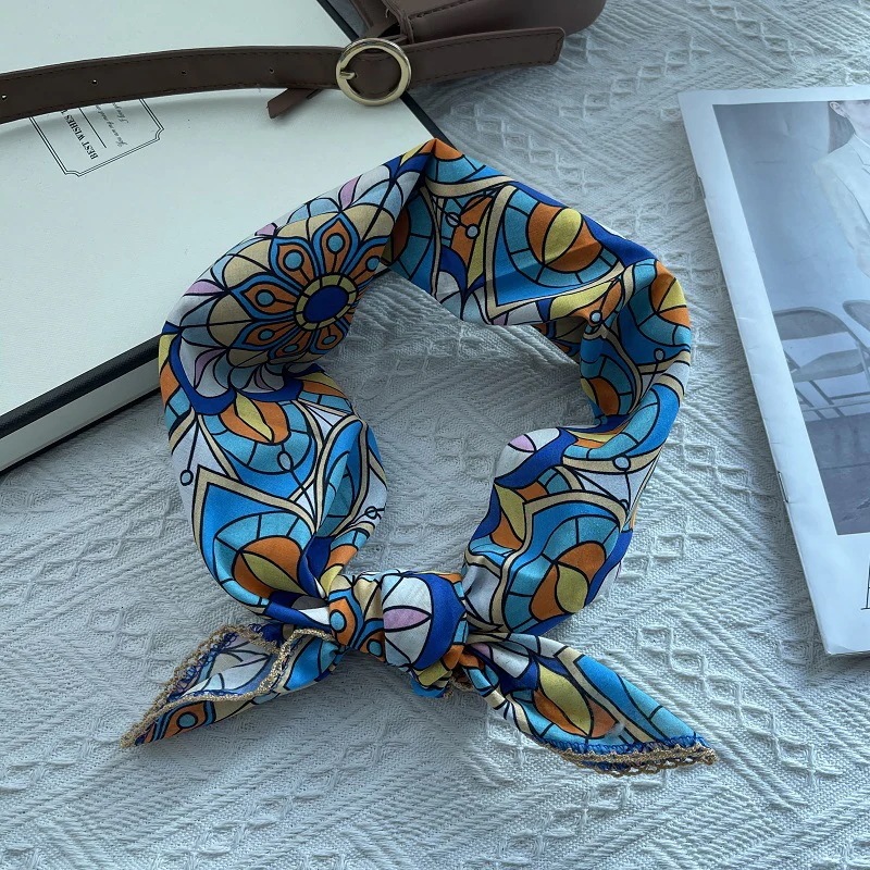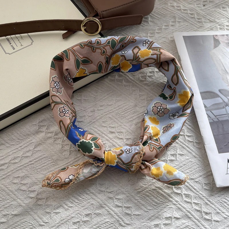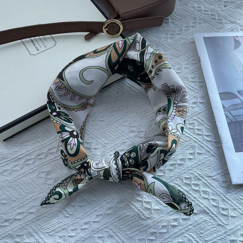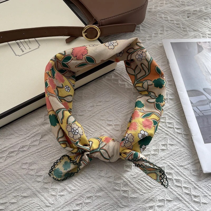 韓国オリジナルシングルレトロトーテムスモールスクエアスカーフレディース 春夏秋カラフルネクタイフレンチコットンリネンタイネックスモールネッカチーフスカーフシルクスカーフ