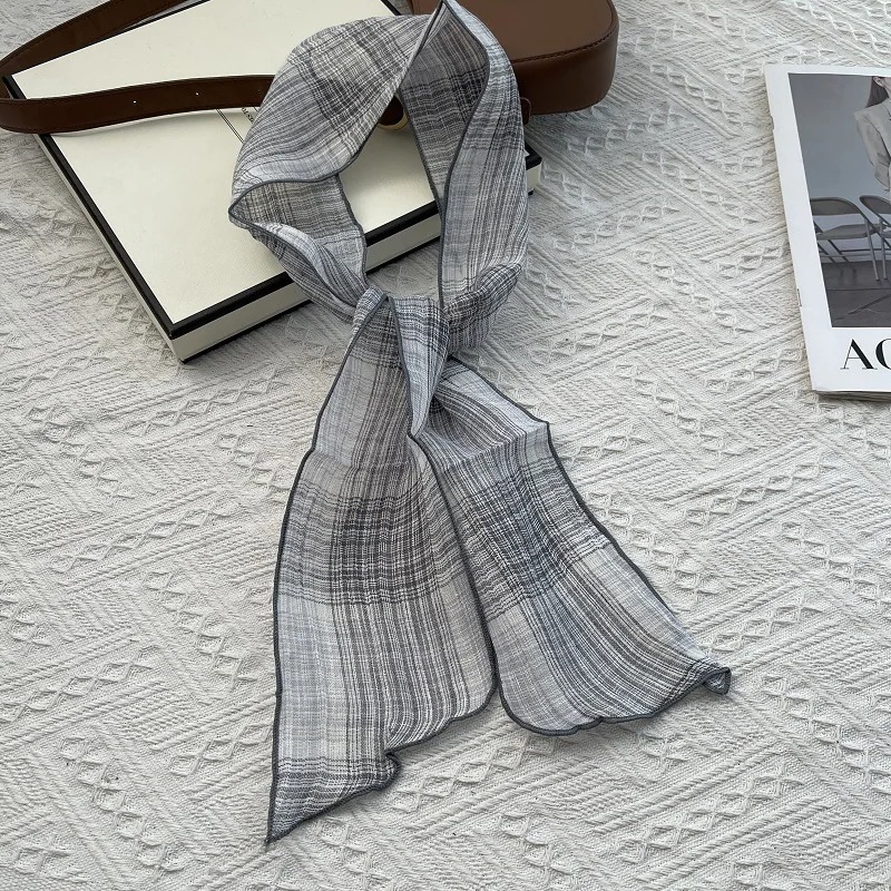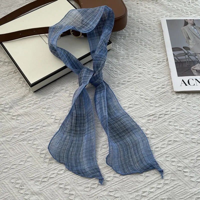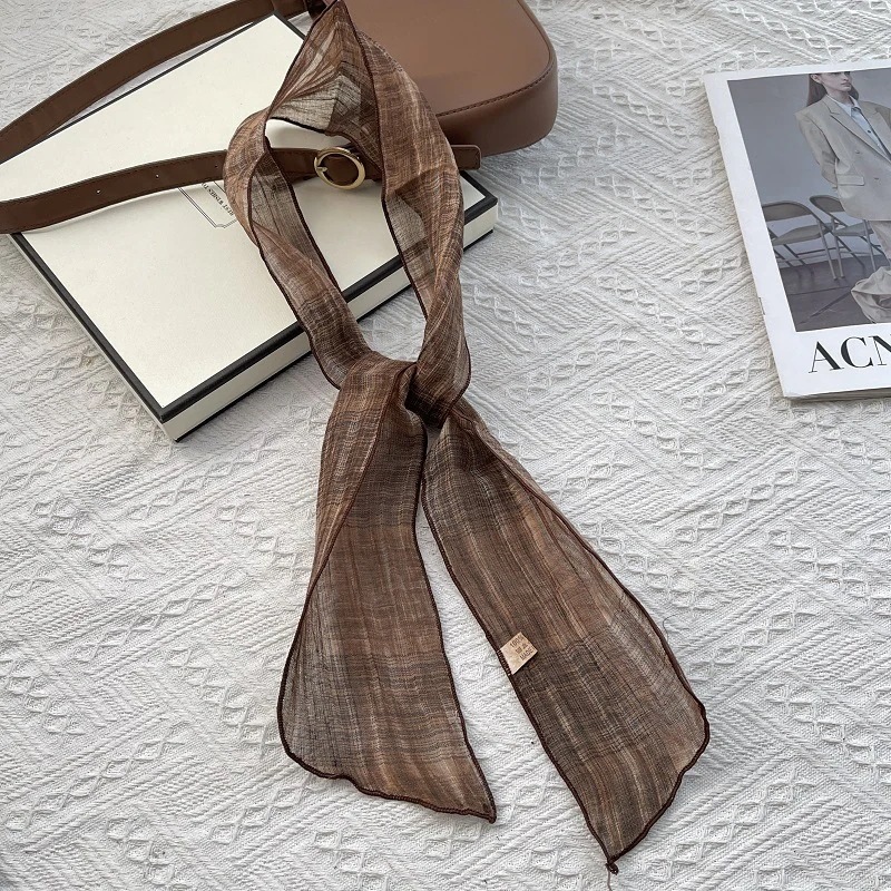 韓国カジュアル汎用リネンも小さなシルクスカーフ 2025春と夏の新しい女性の薄い装飾的な首のスカーフインスカーフシルクスカーフ