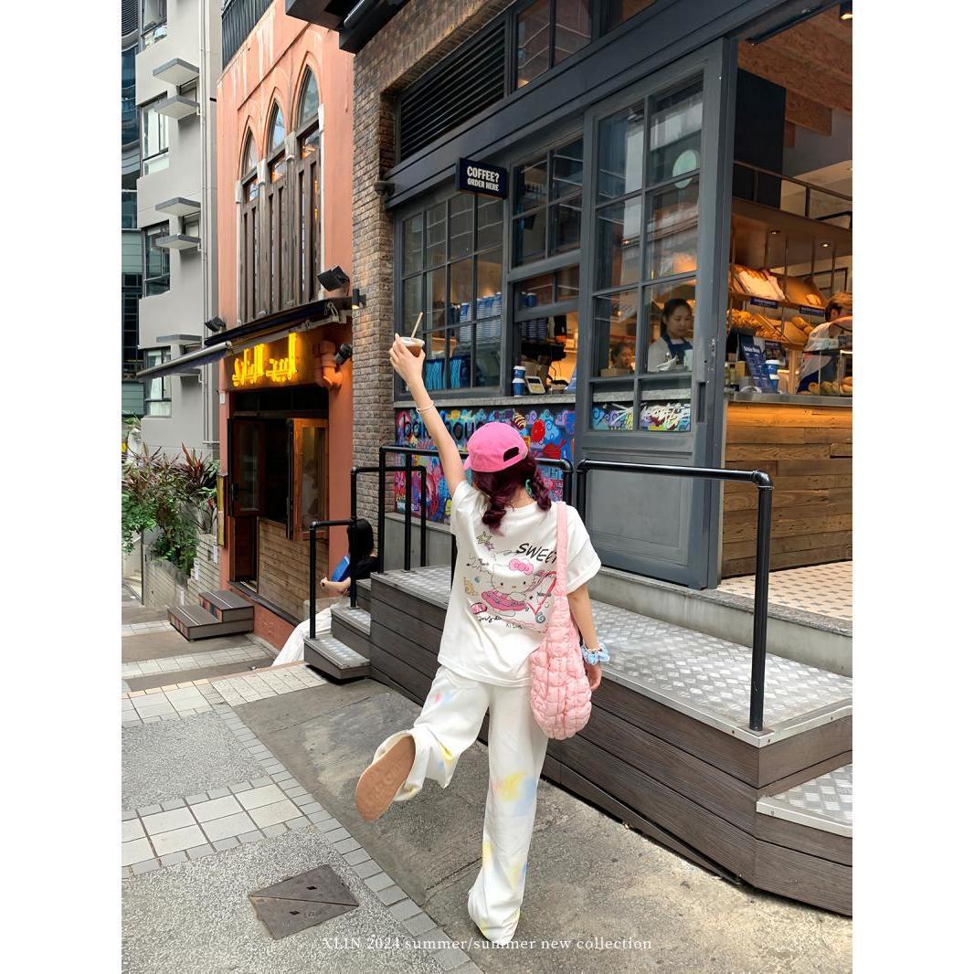 【ゆったり】プリント 半袖Tシャツ ロング丈 マルチスタイル インスタ映え