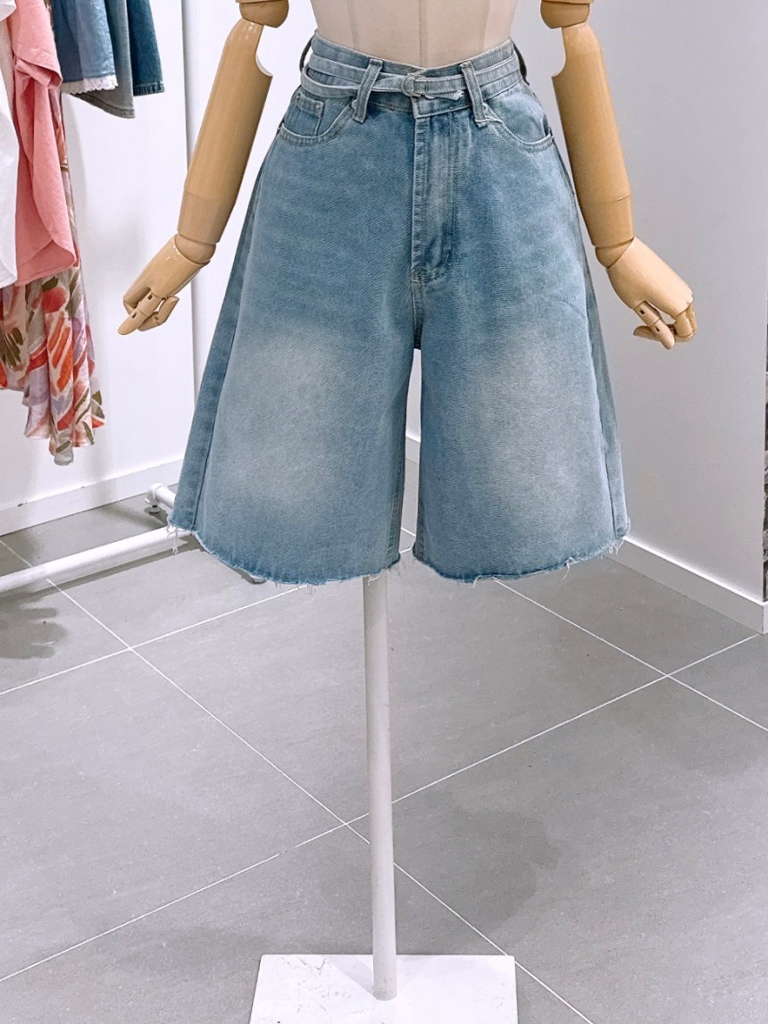 LECCOVE ベルテッド バミューダ 5分丈 デニムパンツ