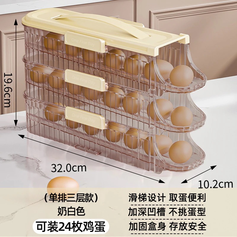 冷蔵庫 ドア ローリング エッグホルダー トレイ エッグストレージ ボックス 冷蔵庫 積み重ね可能 ポータブル エッグトレイ キッチン ローディング エッグトレイ キッチン収納