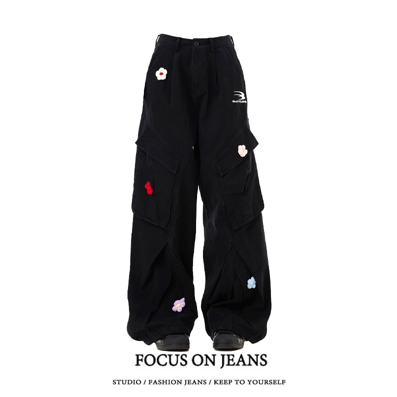 2025春夏 デニムパンツ ロング丈ボトムスハイウエストジーンズ K-POPストリートファッション系韓国風ファッション練習ジーンズ シルエット加工ゆったりレッグレディースカジュアルジーパン衣装