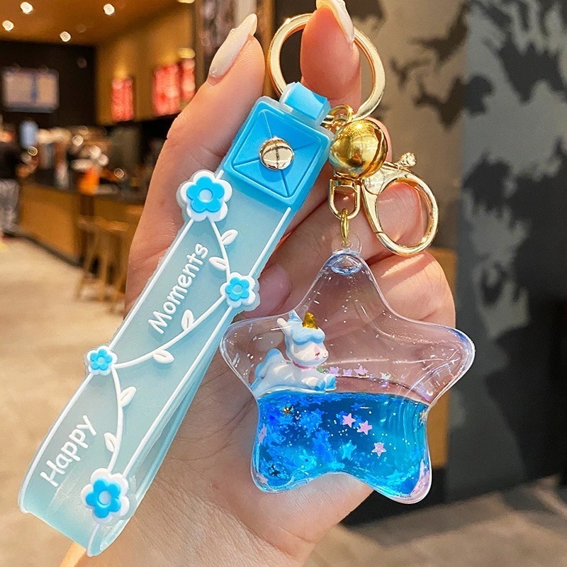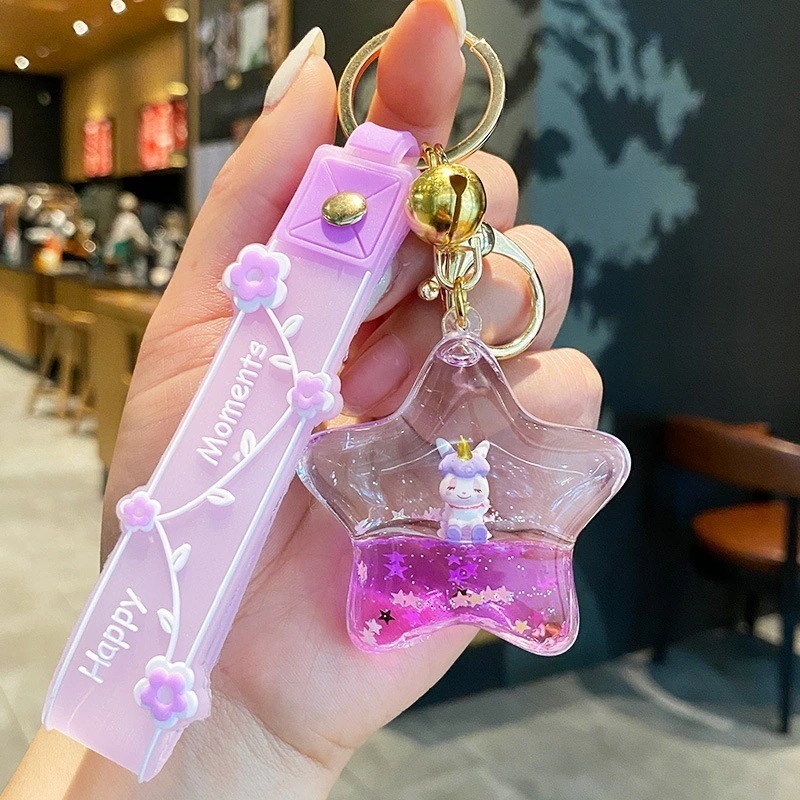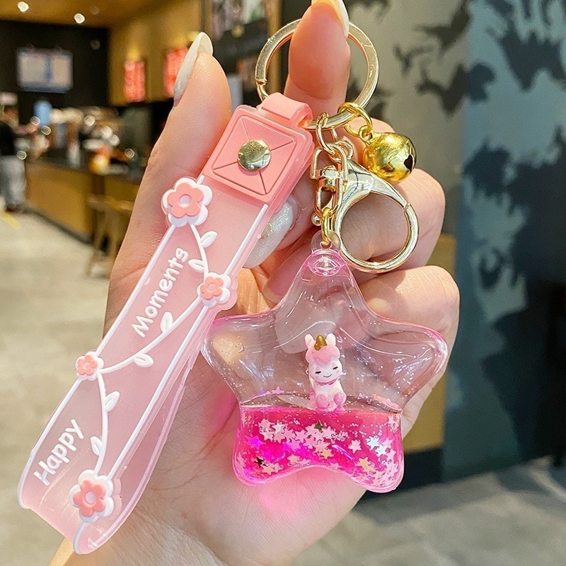 ドリフトボトル液体流砂キーホルダーかわいいユニコーンペンダント絶妙なガールバッグチャームカーキーホルダー