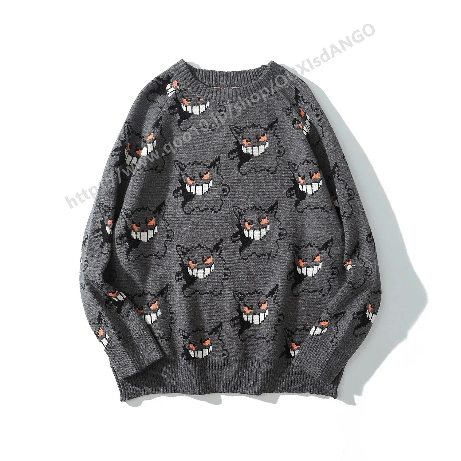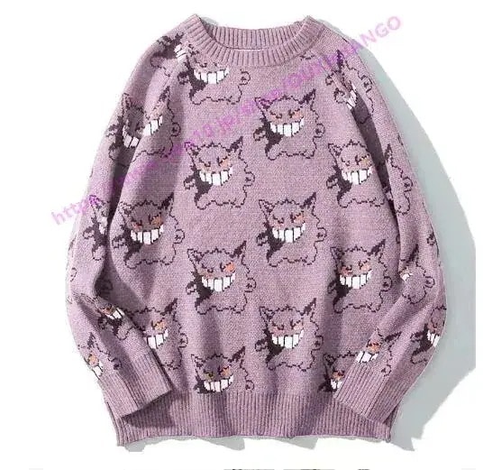 【 迅速な出荷 】大人気2025新作 ポケモン ニット セーター グレー ハロウィンカップル 原宿風可愛い秋冬服 ゲンガー ニット オルチャン 総柄