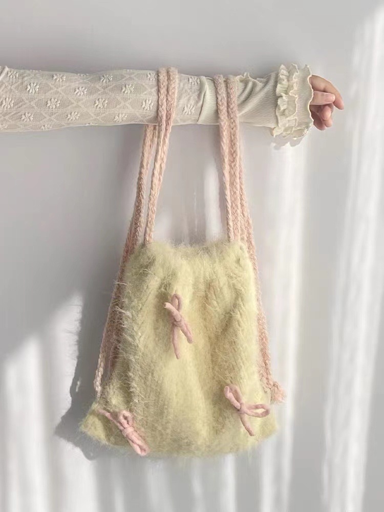 Takong 巾着バックパックボウファーリーバッグ明るい黄色多目的バックパックかわいい