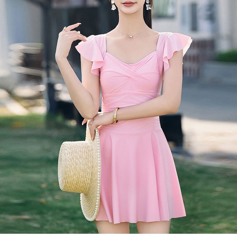 水着 レディース 体型カバー ワンピース ハイウエスト大きいサイズ オールインワン フレア ママ水着 ジム用 フィットネス レディースフレアスリーブ プ水着 かわいい エレガント露出控えめ おしゃれ海