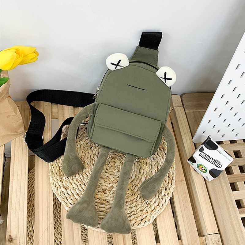 カエルボディバッグクロスボディバッグ かわいい 漫画 カエル カジュアル 胸バッグ ショルダーバッグ スリングバッグ 斜めがけ小物収納カエル ぬいぐるみメッセンジャーバッグ ユニセックス 緑