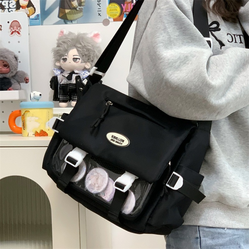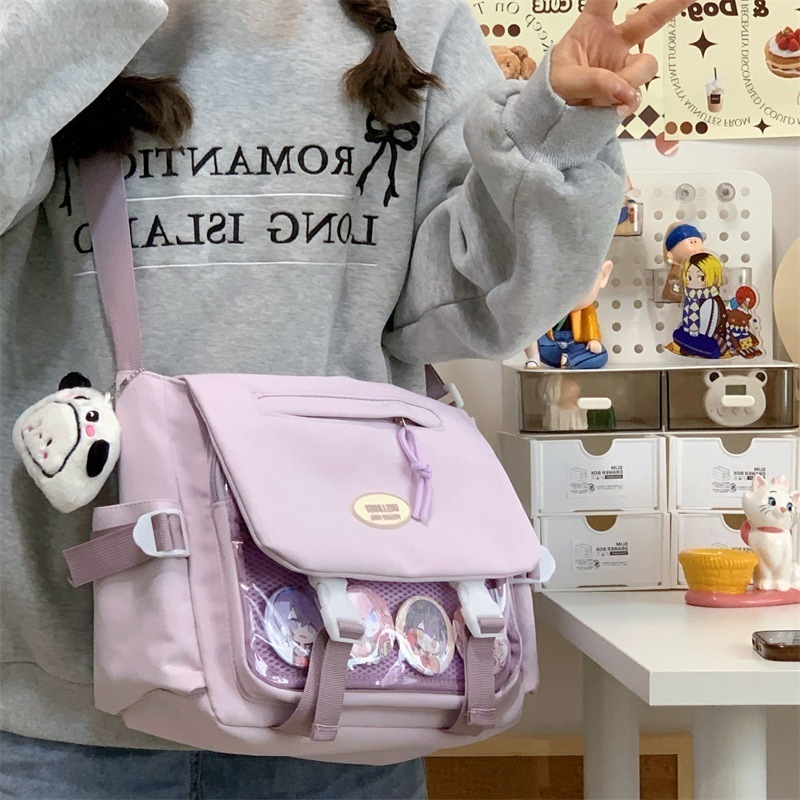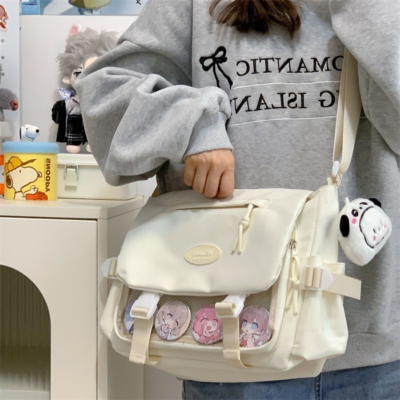 痛バッグポケット痛バショルダーバッグ缶バッチ軽量透明 おしゃれかわいい学生鞄学生バッグ学生かばん全4色