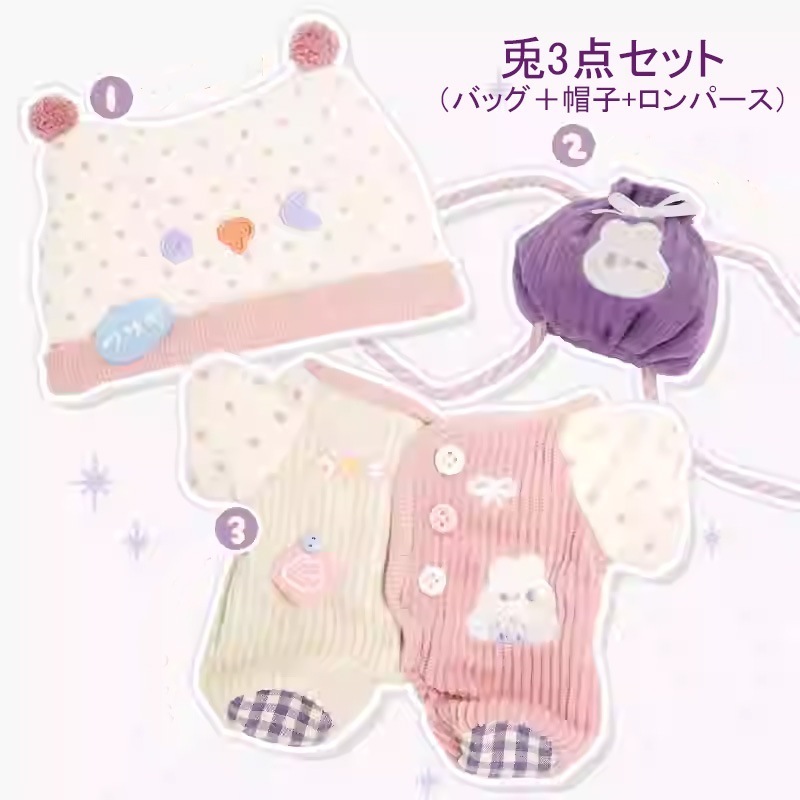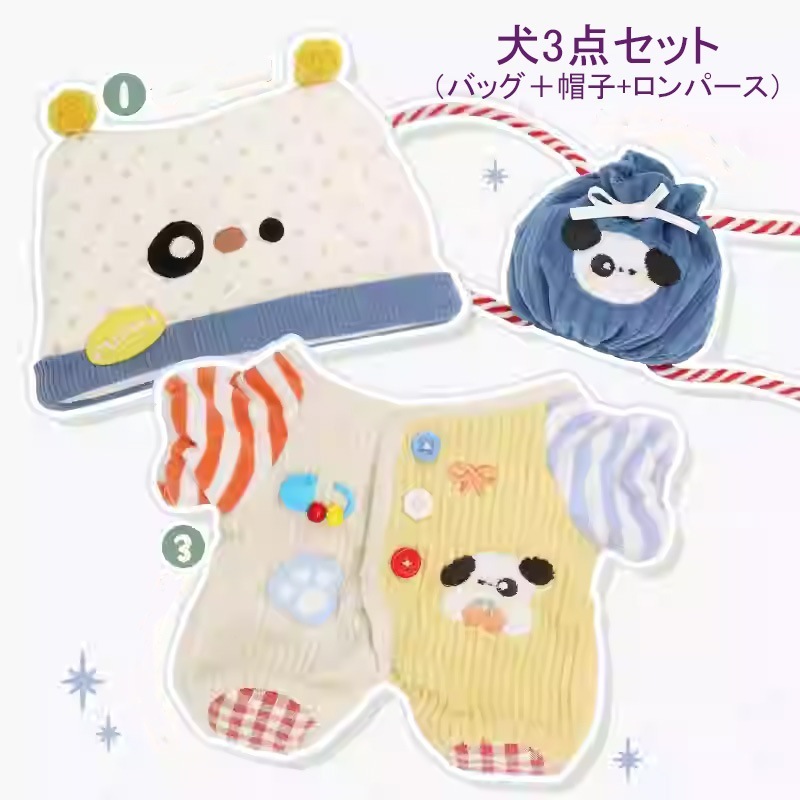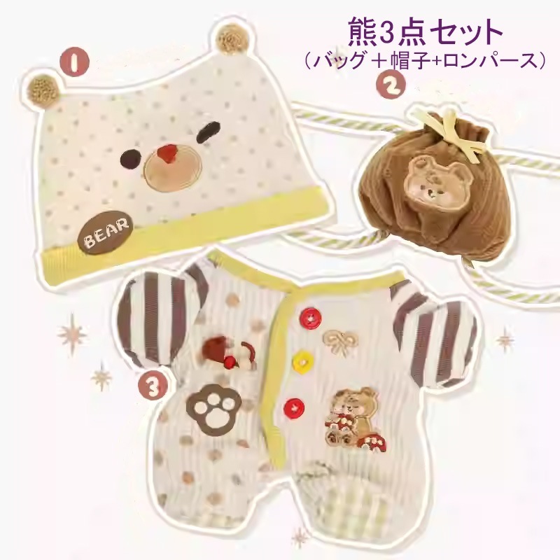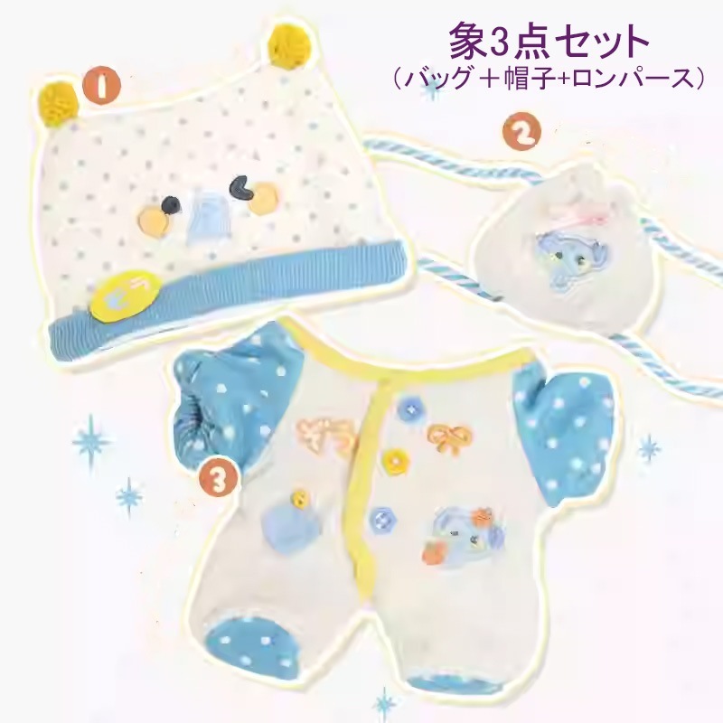 10cm 20cmぬいぐるみ服3点セットぬいぐるみ着せ替え洋服日常服人形ミニ洋服ぬいぐるみ用服衣替え帽子バッグ動物服パジャマ熊象犬兎ロンパース4タイプ