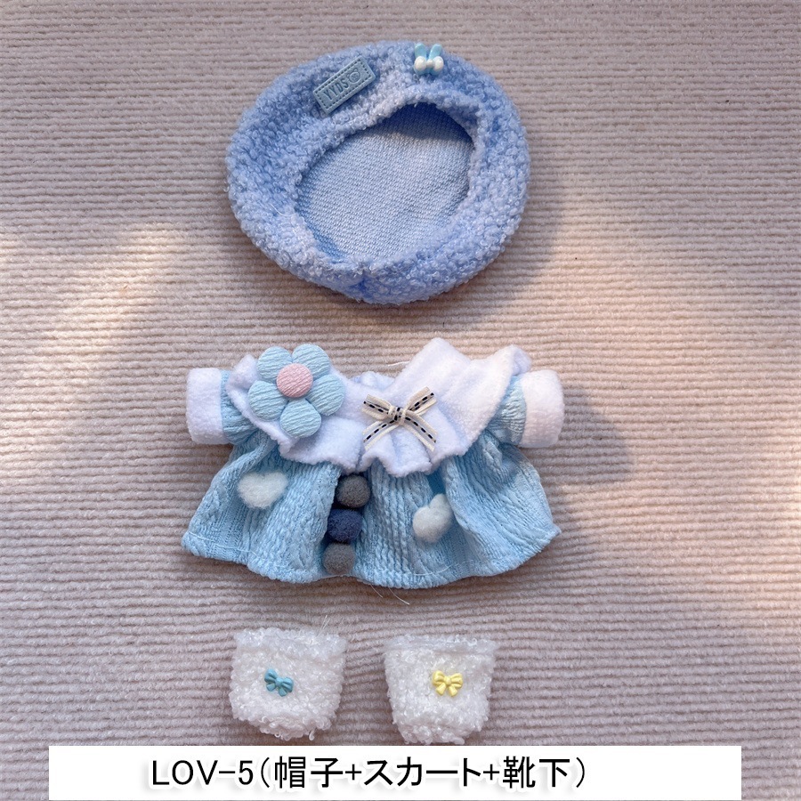 20cmぬいぐるみ服ワンピースセット5セットぬいぐるみ用服ミニ洋服 日常服帽子髪飾り16タイプ
