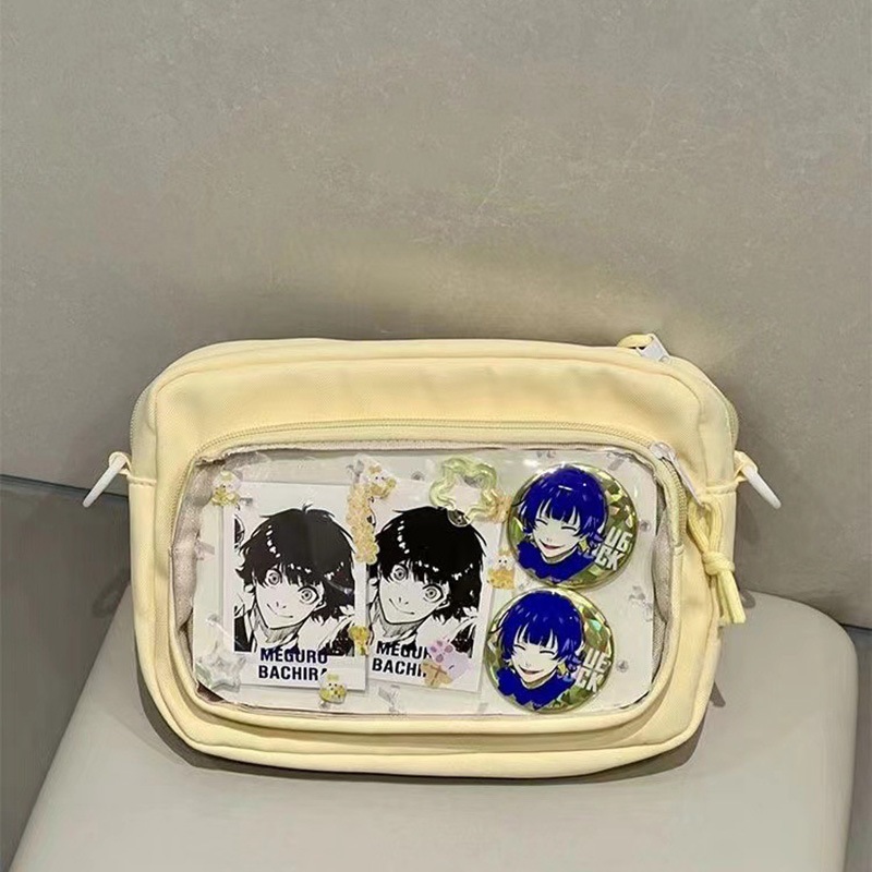 痛バッグポケット痛バショルダーバッグ缶バッチ軽量透明おしゃれかわいい学生鞄 学生バッグ学生かばん全7色