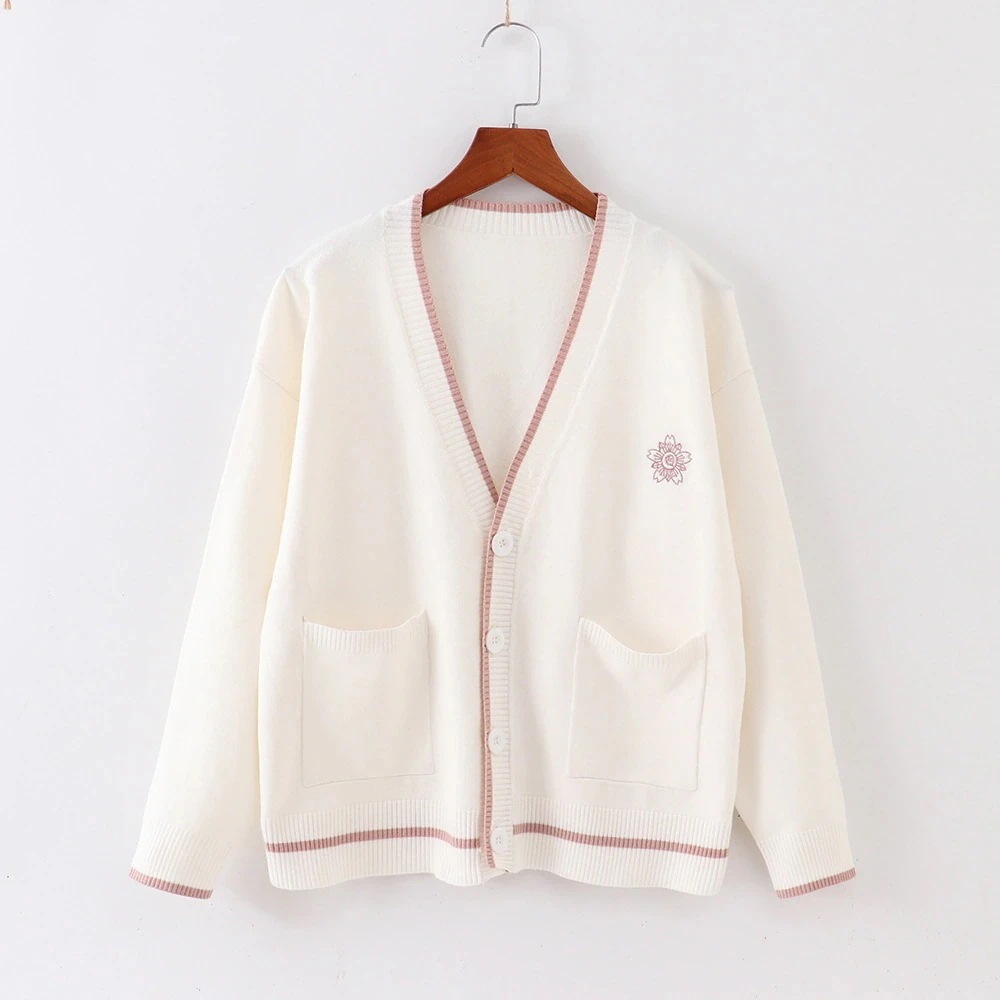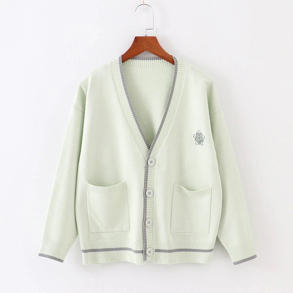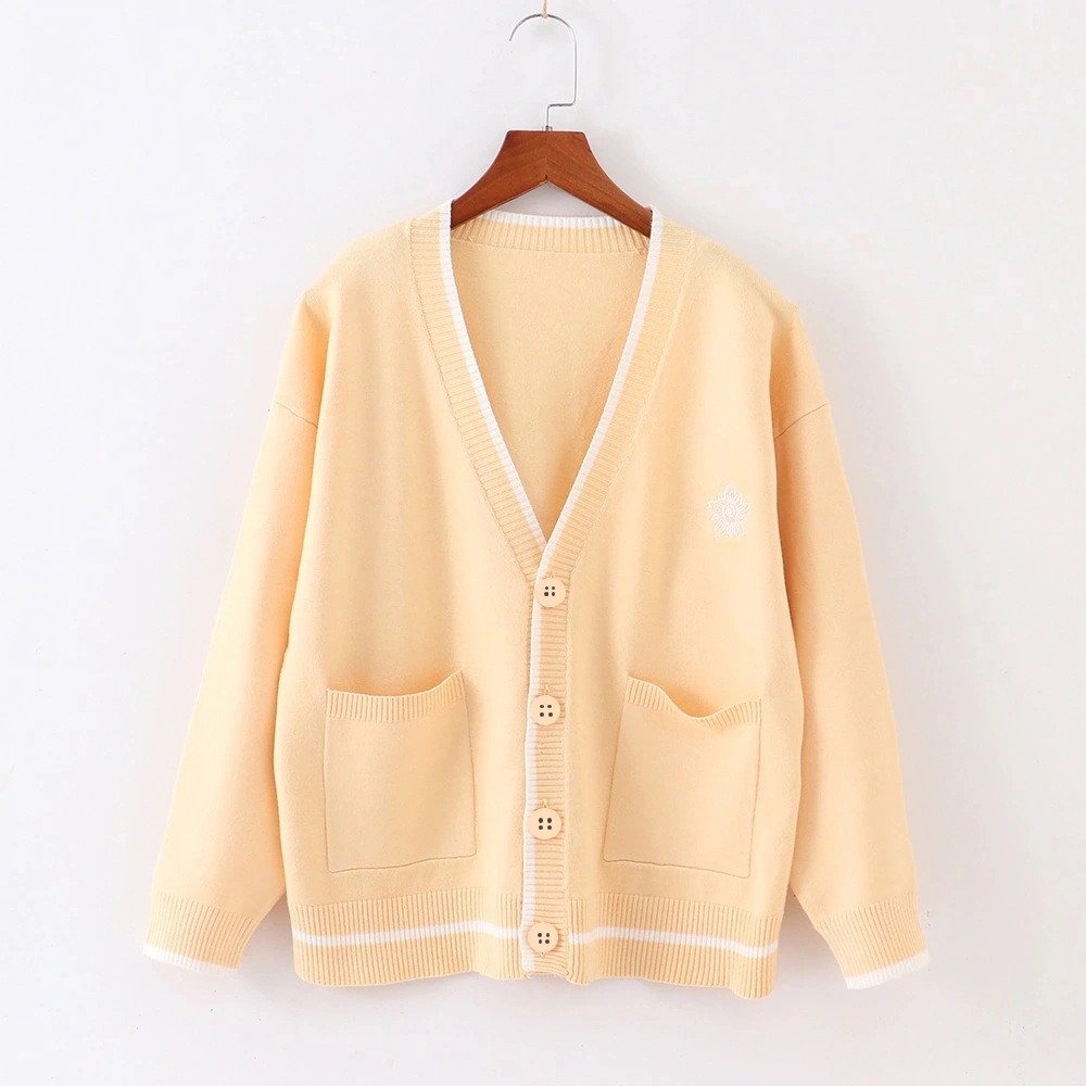 2024 春 秋 Vネック 制服カーディガン ニットセーター カーディガン レディース ゆったり 学生 長袖 アウター レディース