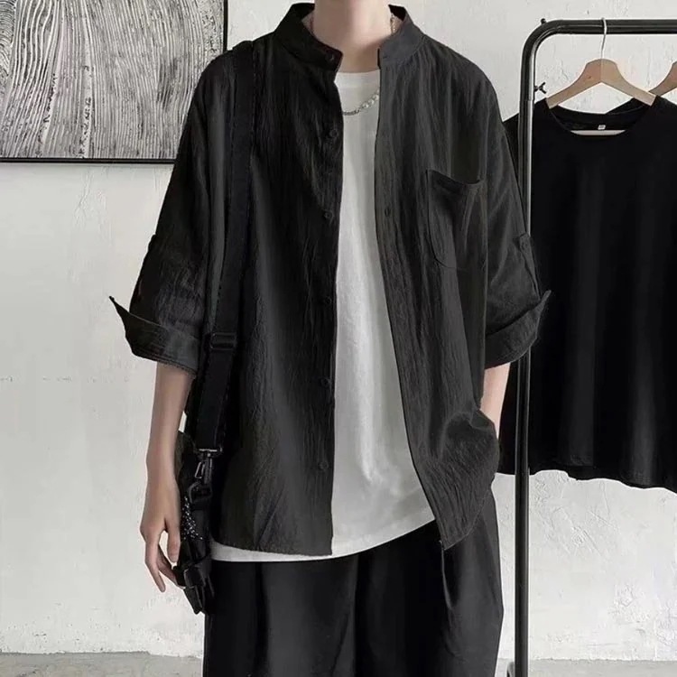 メンズサマージャケットサマーカーディガンチャイナシャツカジュアル通気性春夏綿麻混トップストップス柔らかい大きいサイズゆったり無地ストリート七分袖