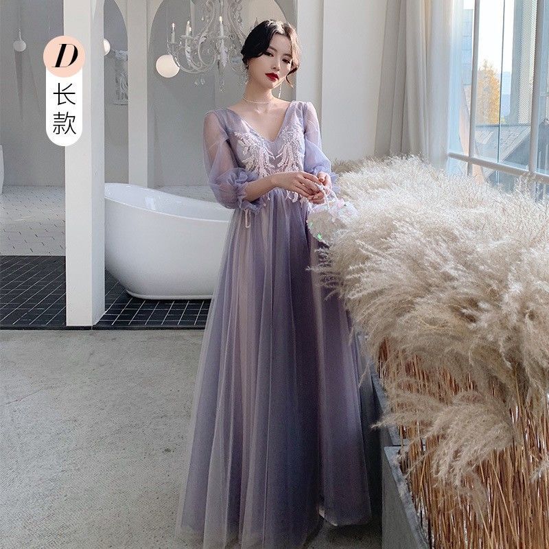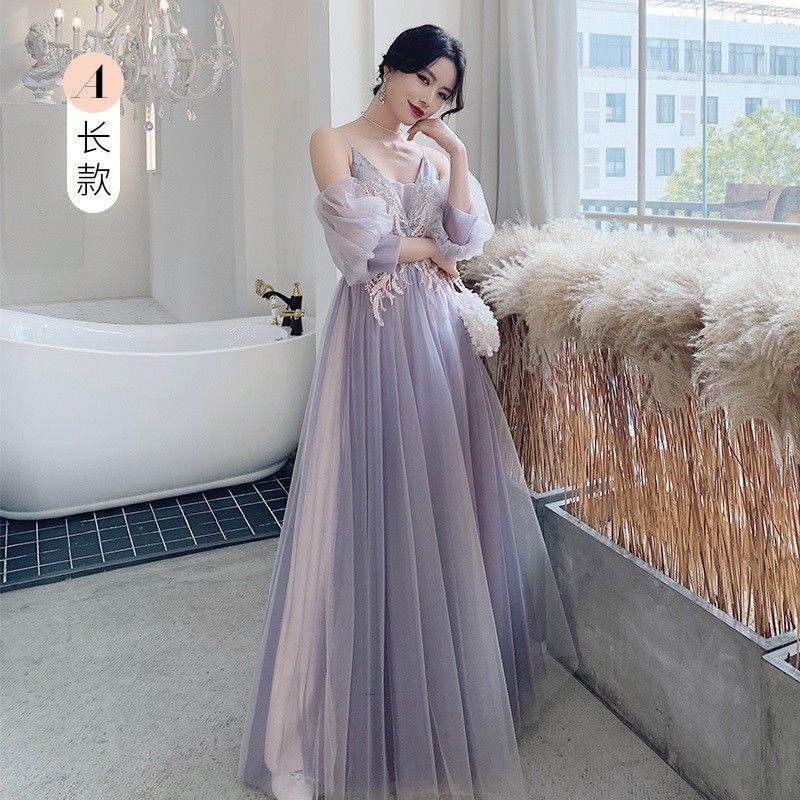 花嫁介添人ドレスロングパープル女性2025年の妖精の気質の自己修養と薄い姉妹グループのイブニングドレスロングドレス