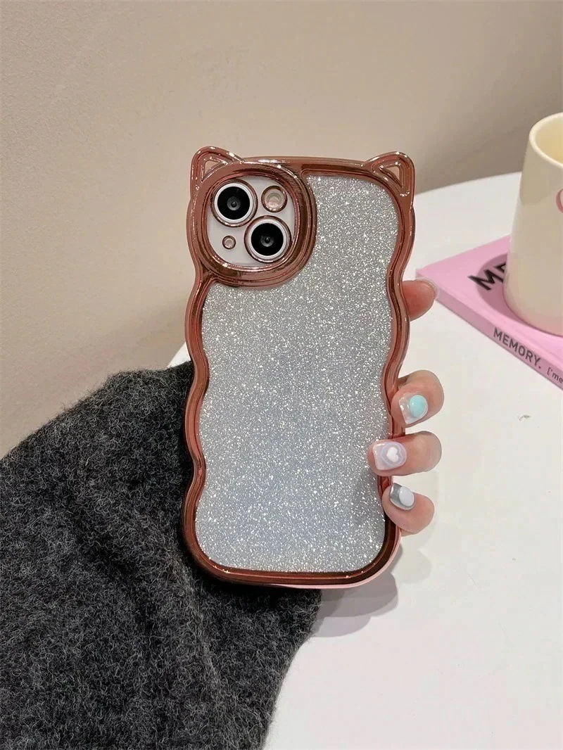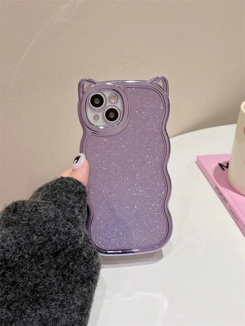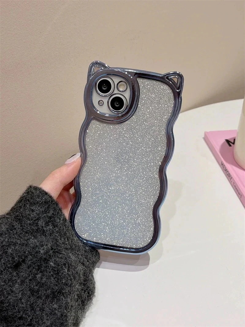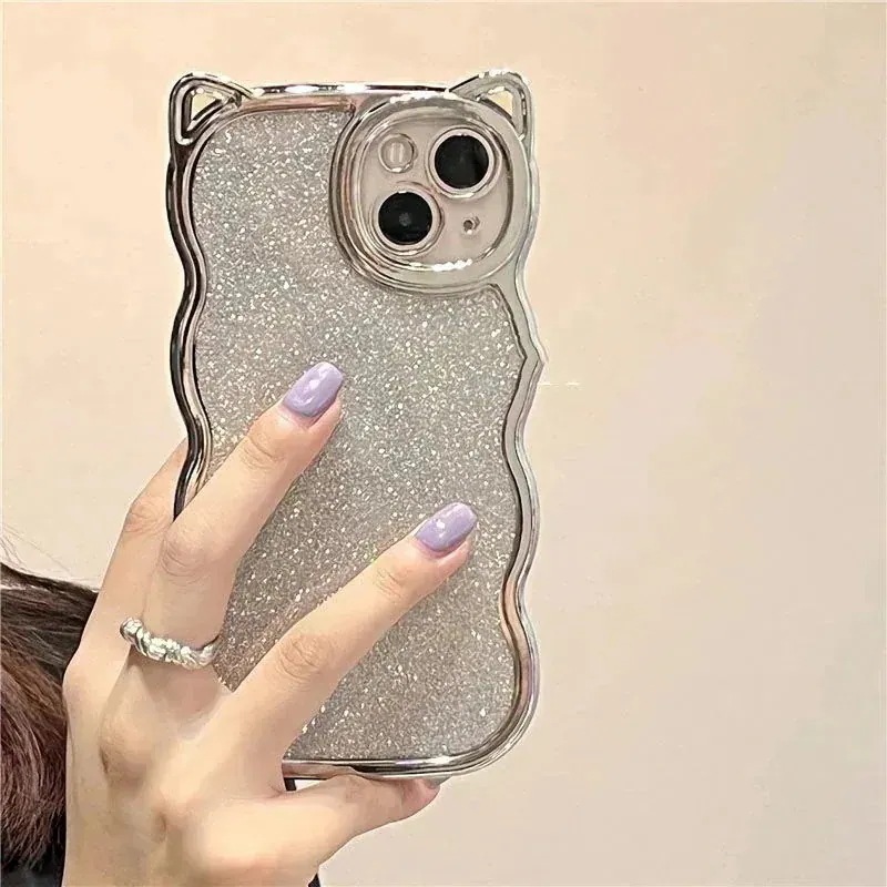 携帯電話ケース猫耳シルバーフラッシュパウダーiPhone promax 13携帯ケース11-16個性ソフト