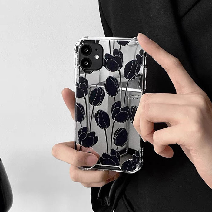 キュウリップ iPhone14ケース iphoneケース iphoneカバー ミラー 鏡 フラワー フラワーズ 花柄 スマホケース スマホカバー iPhone14 iPhone12 ケース iPhon
