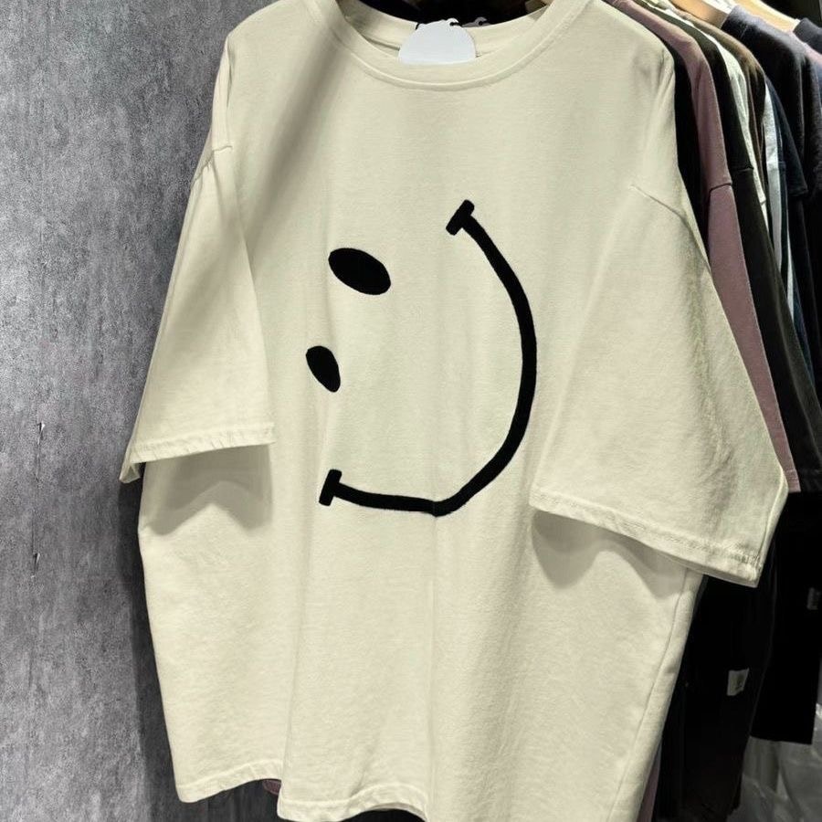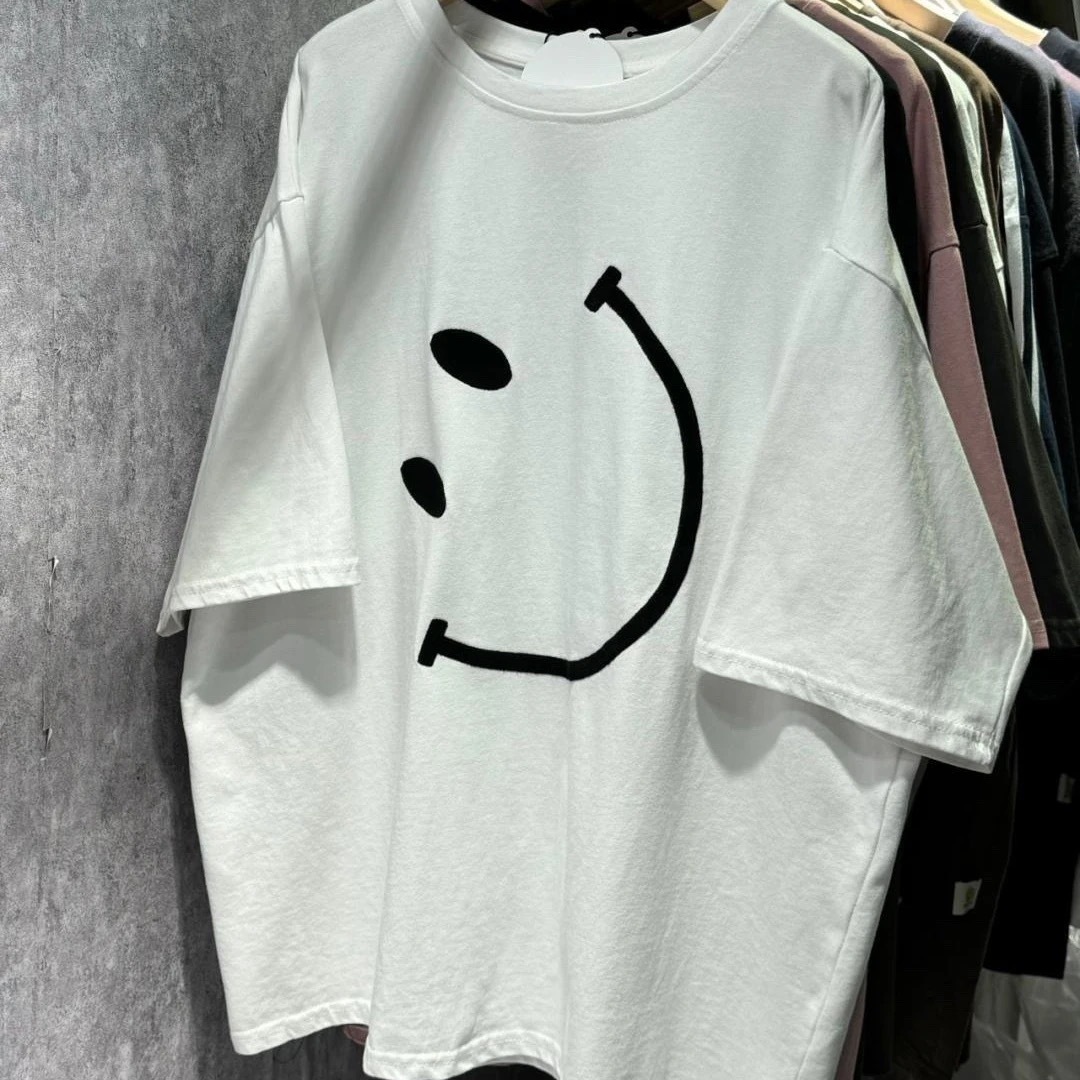 スマイル レディース Tシャツ 半袖 大きいサイズ ティーシャツ 韓国ファッション トップス無地シンプル レディースゆったり男女兼用 カップルでも友達ともお揃いOKのTシャツ