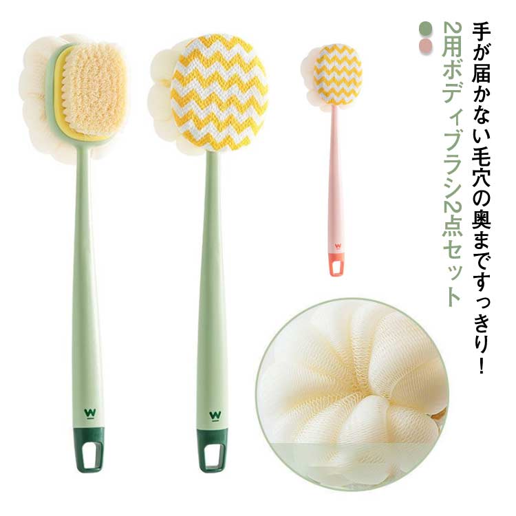 背中ブラシ ボディブラシ 背中 泡立て 垢擦り シャワーブラシ スキンケア 角質ケア 毛穴洗浄 背中ニキビ 2点セット 握りやすい ニキビ ボディケア 毛穴洗浄 背中 角質取り お風呂用 バス用品 洗