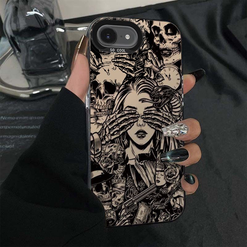 スケルトン かわいい 漫画 ハイエンド フロスト カラフルシルバー iphone16eケース iphoneケース かわいい 韓国 iPhoneケース