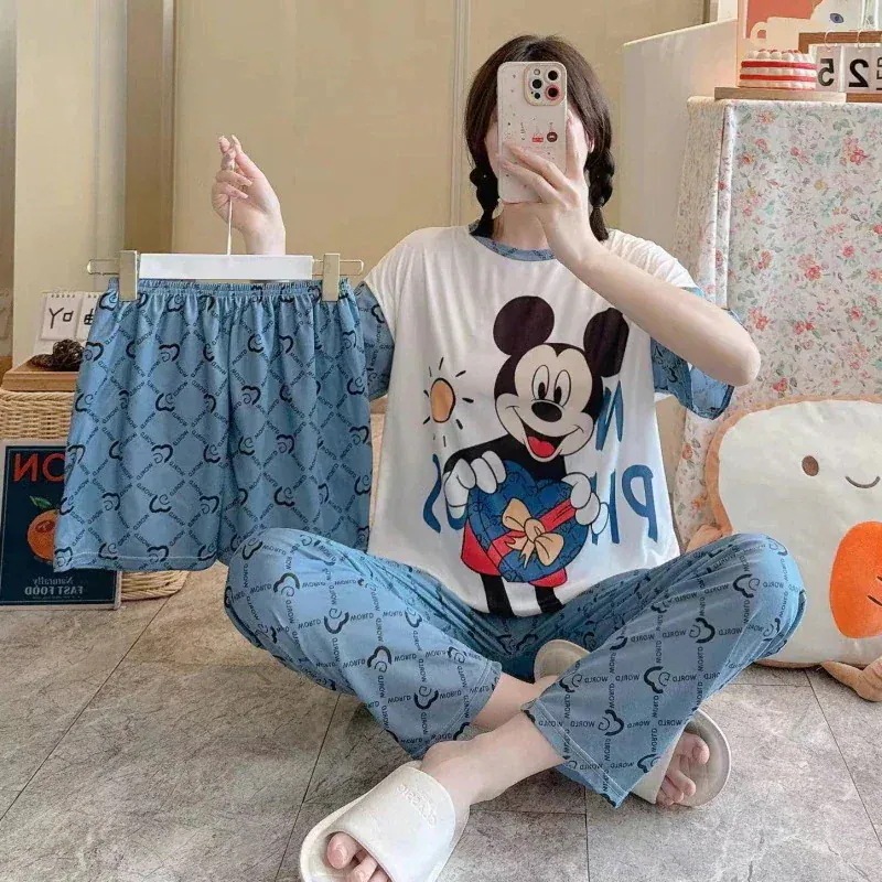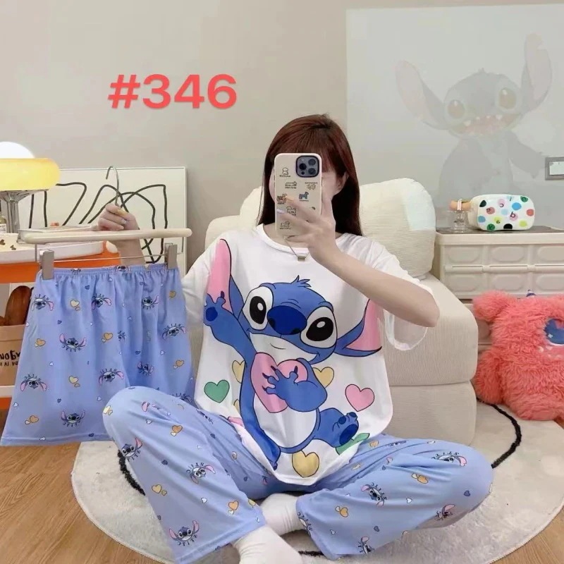 キャラクター パジャマ 夏 3点セットルームウェア上下セット半袖 部屋着セットアップ ナイトウェアドラえもん スティッチミッキーマイメロクロミちゃんプーさんドナルドダックステラルーサンリオスヌーピー