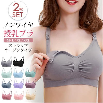授乳ブラ 2枚セット ブラジャー マタニティブラ ノンワイヤー 前開き ナイトブラ 大きいサイズ ストラップ かわいい 垂れ防止 授乳 ブラ 下着 マタニティ