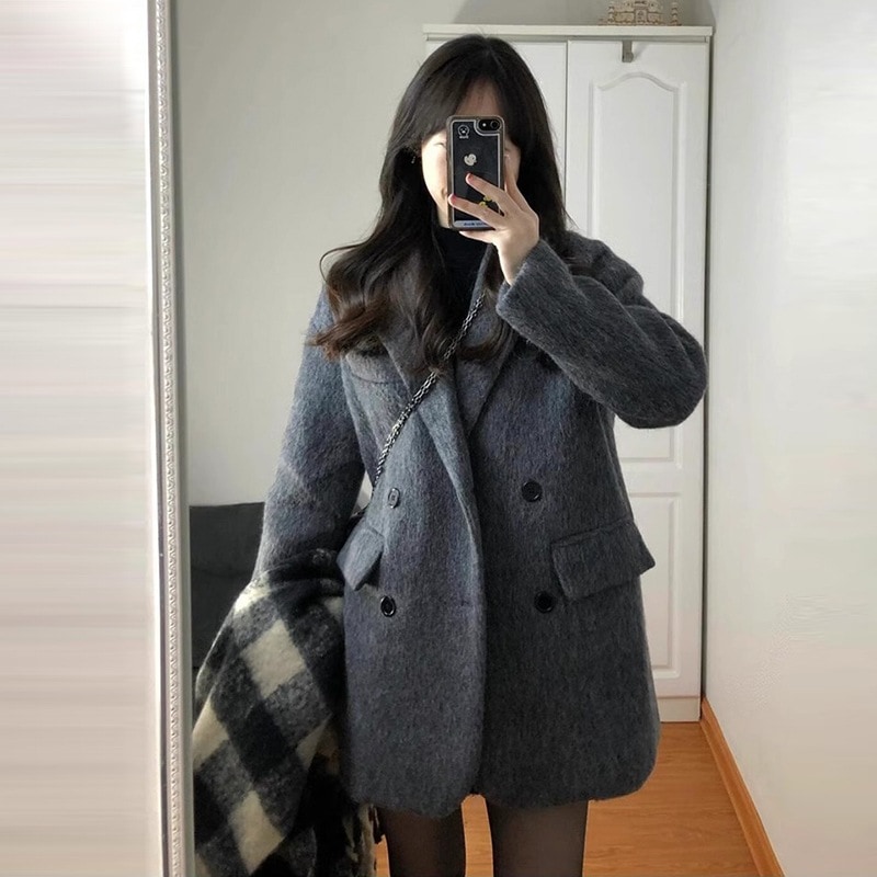 大人っぽチェスターコート ショートグレーツイードコート女性ツイードジャケット新作秋冬ヘップバーンスタイル厚手の小さなシニア感覚