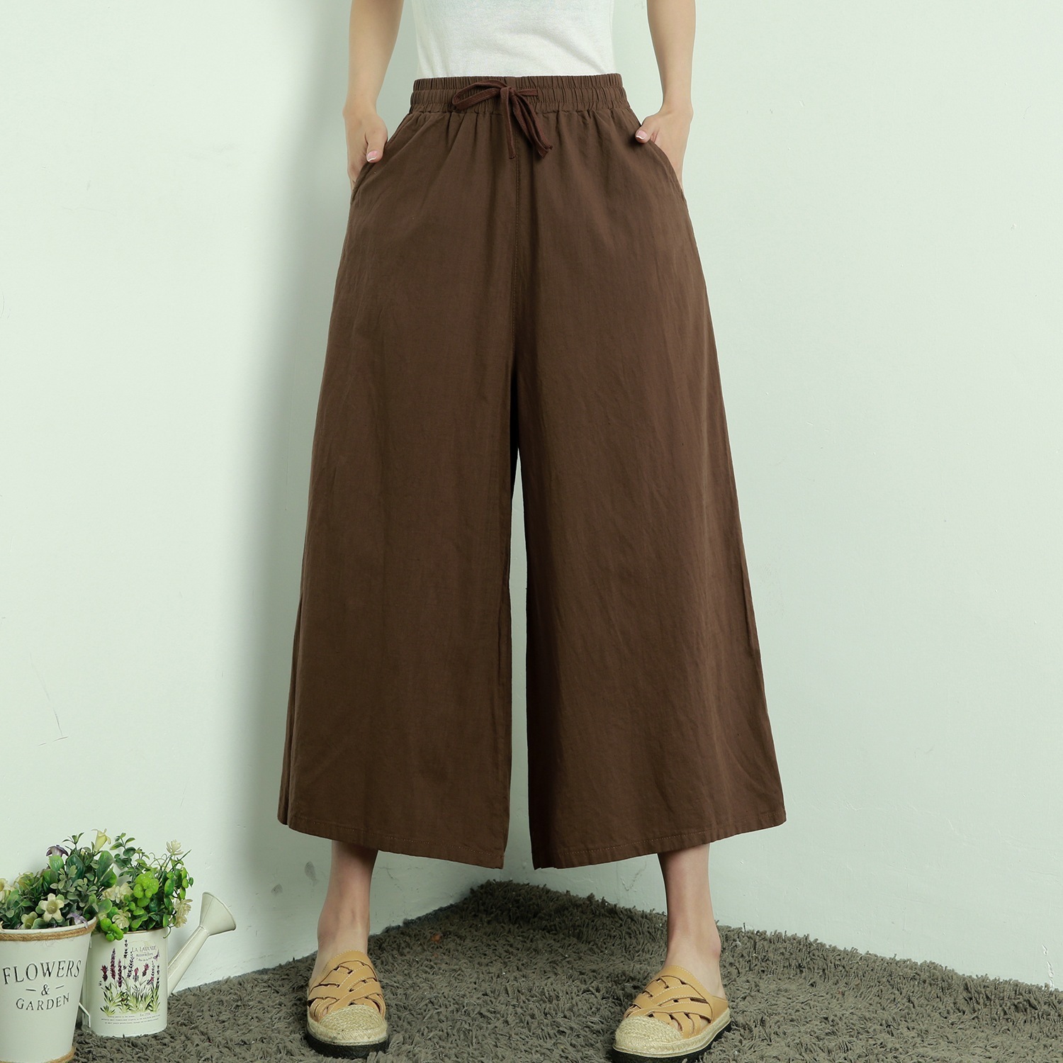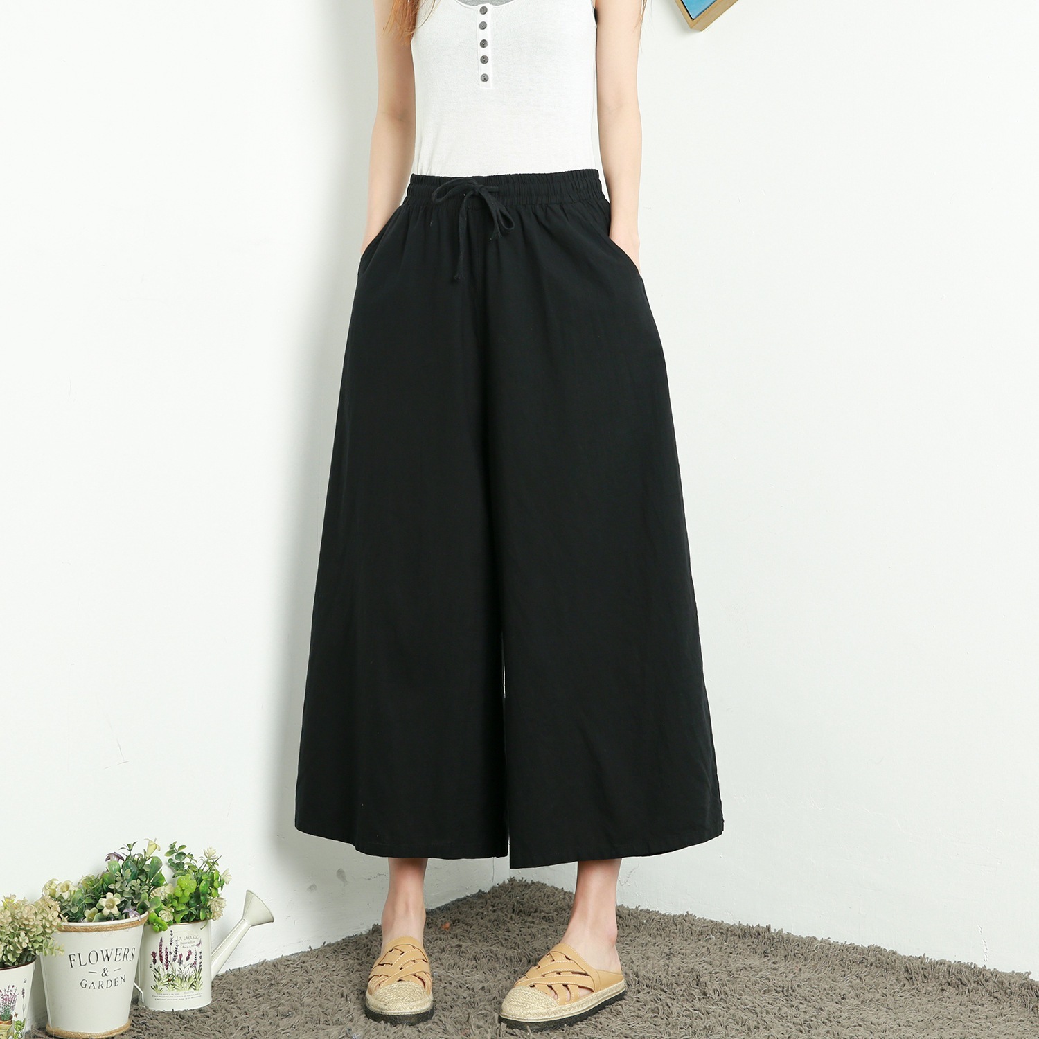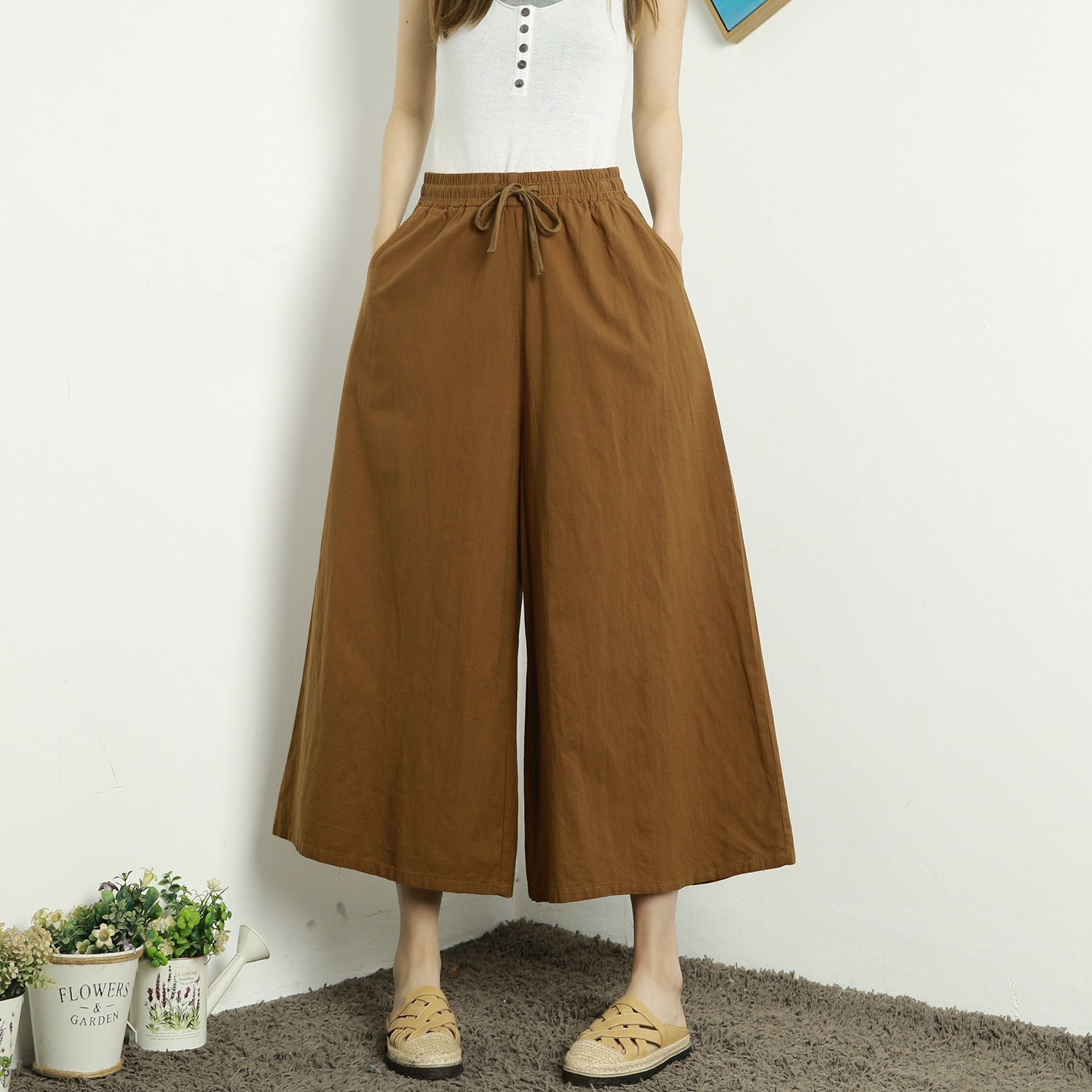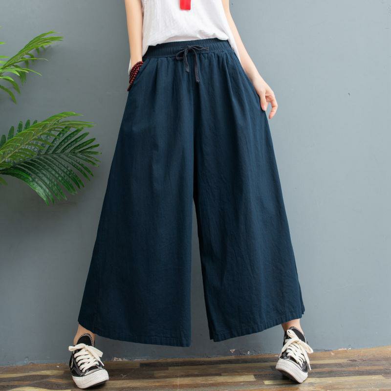 パンツ スカーチョ ワイドパンツ ガウチョ スカンツ レディース 綿麻 体型カバー ハイウエスト ン ポケット付き