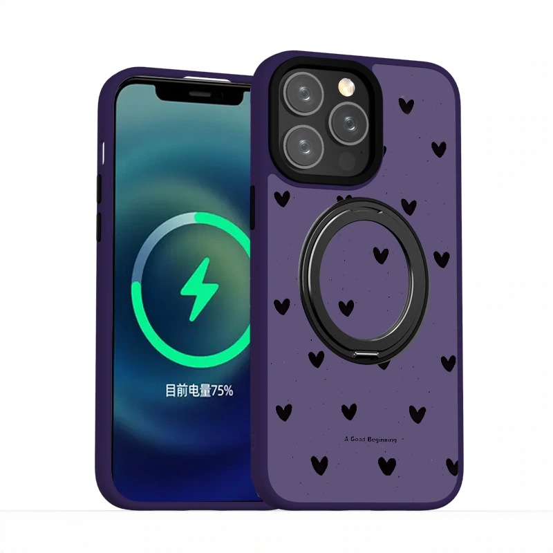 iPhone16 ケース スマフォケース マグセーフ magsafe 折り畳み式 開閉式 スタンド スマフォスタンド ハート ドット ブラック 透明 おしゃれ カジュアル カメラレンズ保護