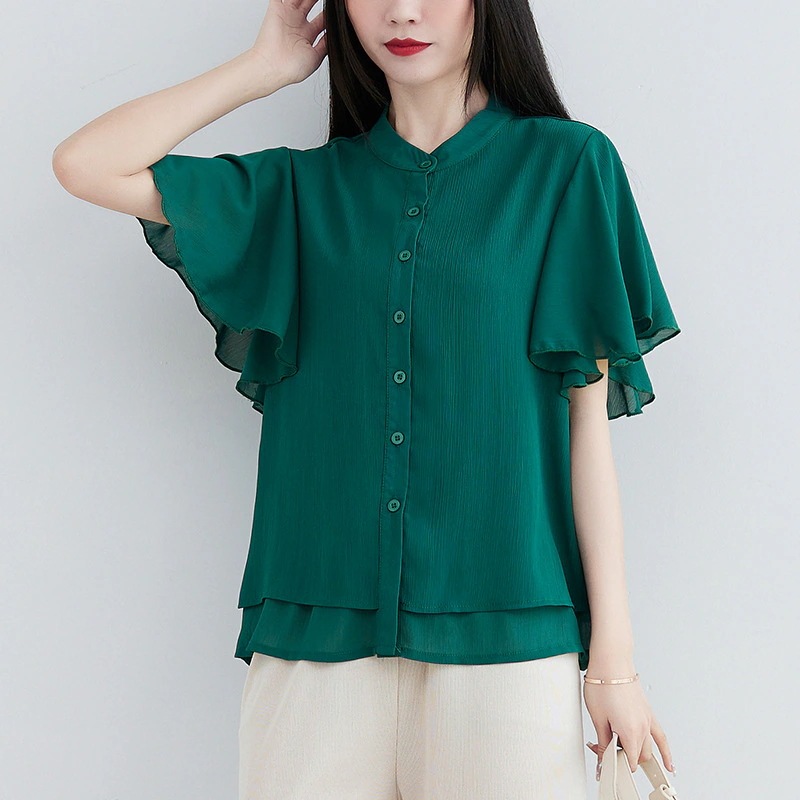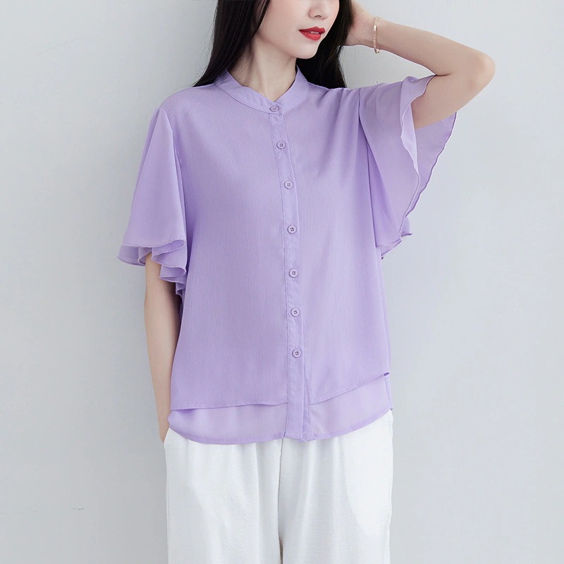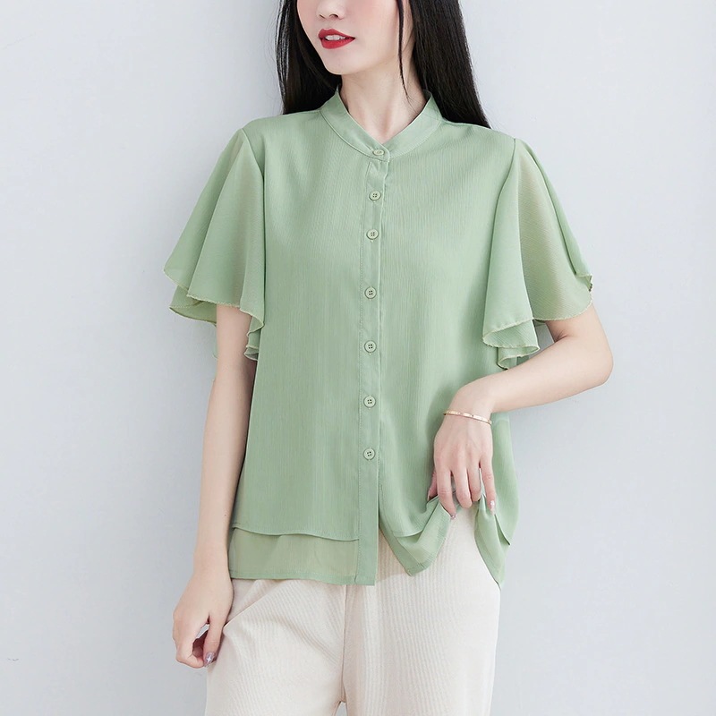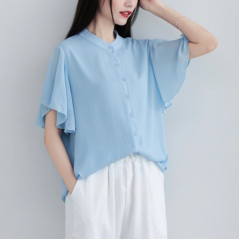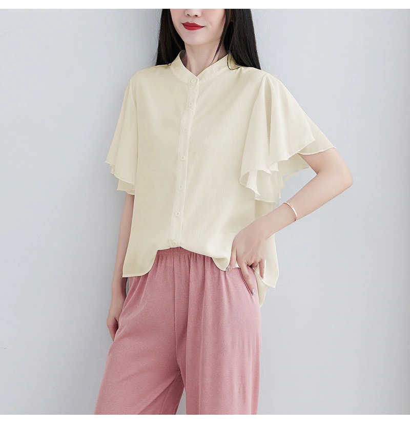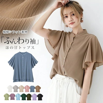 【激安本日限定】肌着感覚で着られるブラウス フリル袖 レディース 二の腕を隠し 涼やか シフォンブラウス 半袖 レディース Tシャツ 袖 母の日 ブラウス シャツ 韓国ファッション