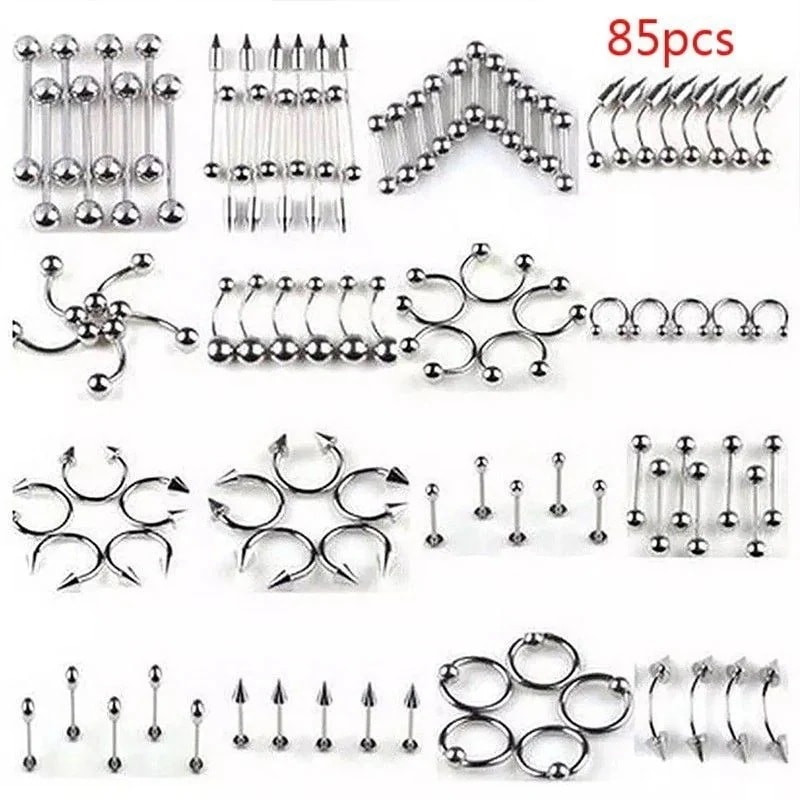 85タンネイルミックスセットステンレスピアスジュエリーノーズネイル眉毛ネイルリップネイルへそネイルユニセックス