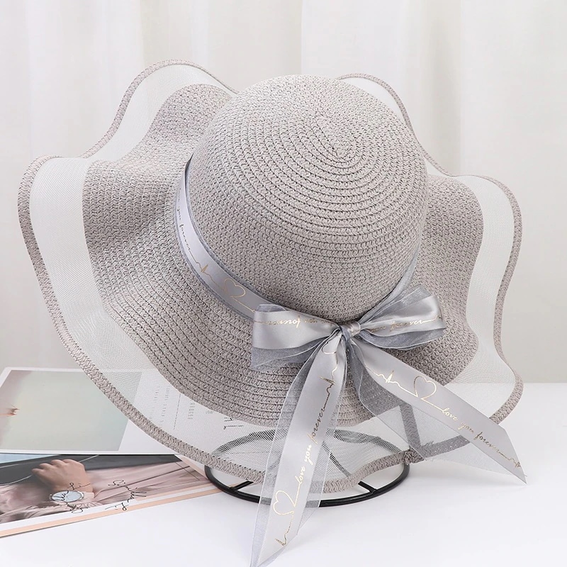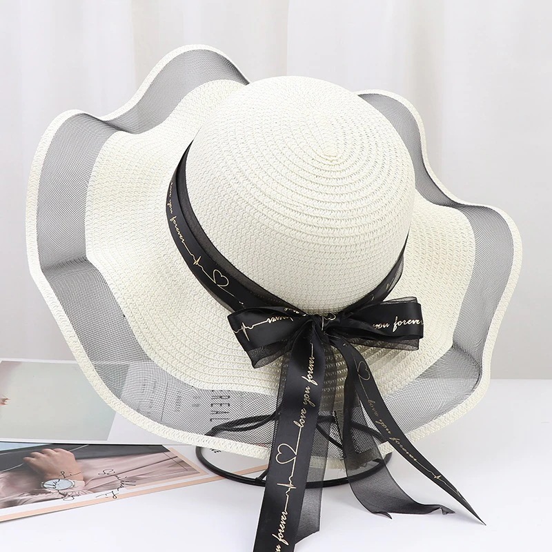 ハット 夏 新作 夏の準備 2025年夏の広いブルマにリボンがついたビーチハット 女性用 夏のアウトドア用日除け・日焼け止め ファッションな丸い天蓋のわら帽子