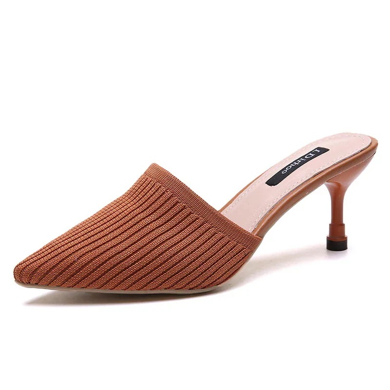 新作 レディースニットミュールサンダル ピンヒール エレガントモード 夏のお出かけ 普段使い ハイヒールサンダル 美脚効果 通気性 通勤対応 5色展開