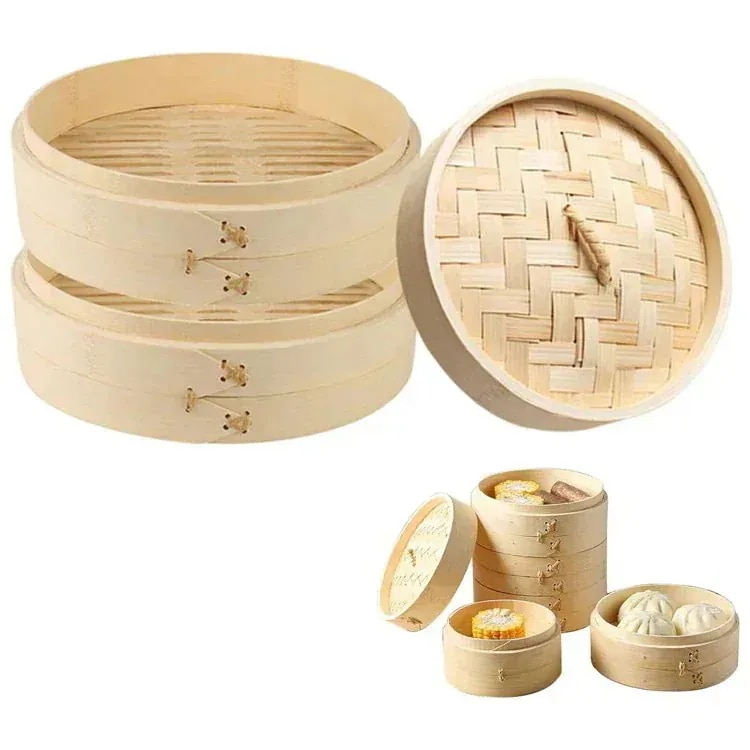 Lucky bagせいろ蒸し 天然竹製 2段セット 蒸篭 蓋付き 小 蒸籠 多用途 おしゃれ セイロ 餃子 饅頭 小籠包 点心 せいろ蒸し器 中華料理専用 蒸 家庭用 中華 蒸籠蒸し器 業務用 蒸し物
