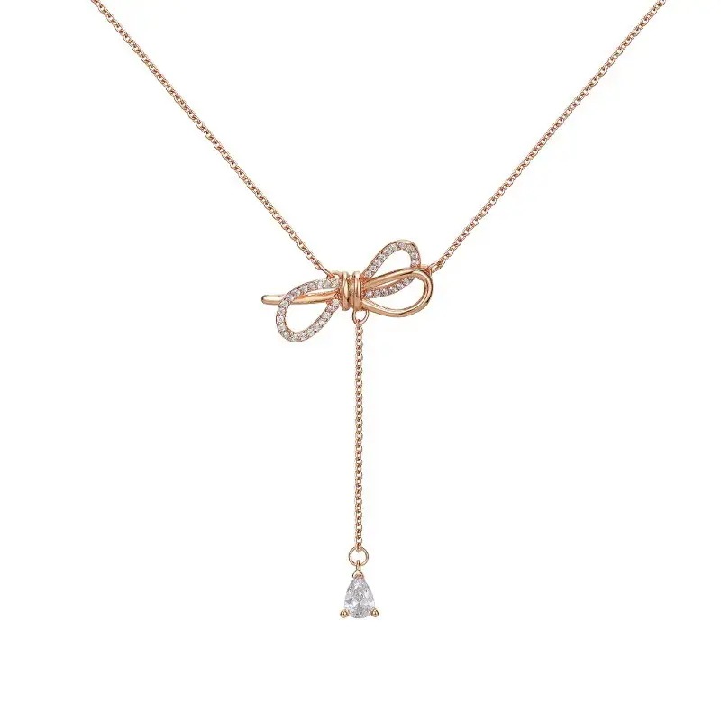 リボンひと ネックレス レディース シンプル チョーカー アレルギー対策 ピアス つけっぱなし