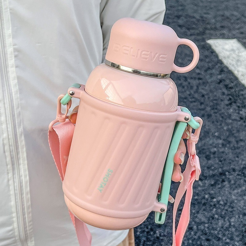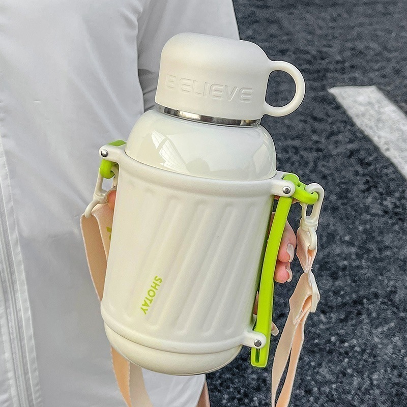カバー付き 1000ml 直飲み 真空断熱 水筒 ステンレスボトル 保冷 茶こし付き ストラップ付き コップ付き 肩紐 800ml スポーツドリンク対