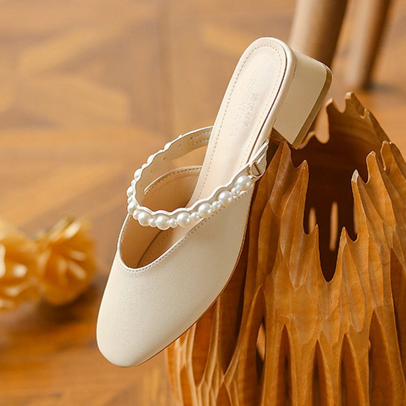 SMFashion超人気商品推薦 レトロ スクエアトゥ 太ヒール ミュール ミュール sweet系 パール ローヒール ミュール サンダル 可愛い サンダル レディース オフィス通勤OK