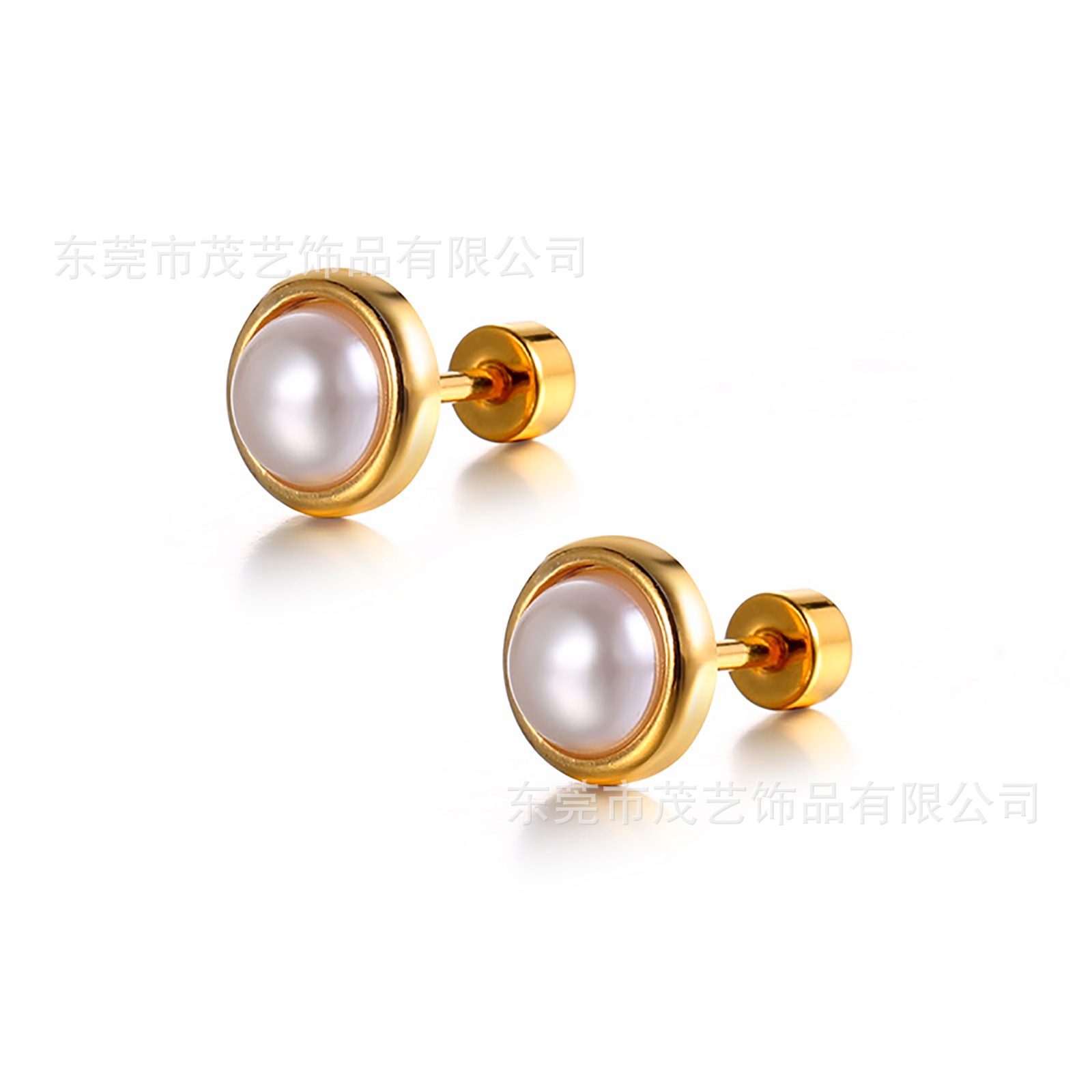 高級感のあるレトロな真珠の丸餅ピアス イヤークリップ 耳のくぎ