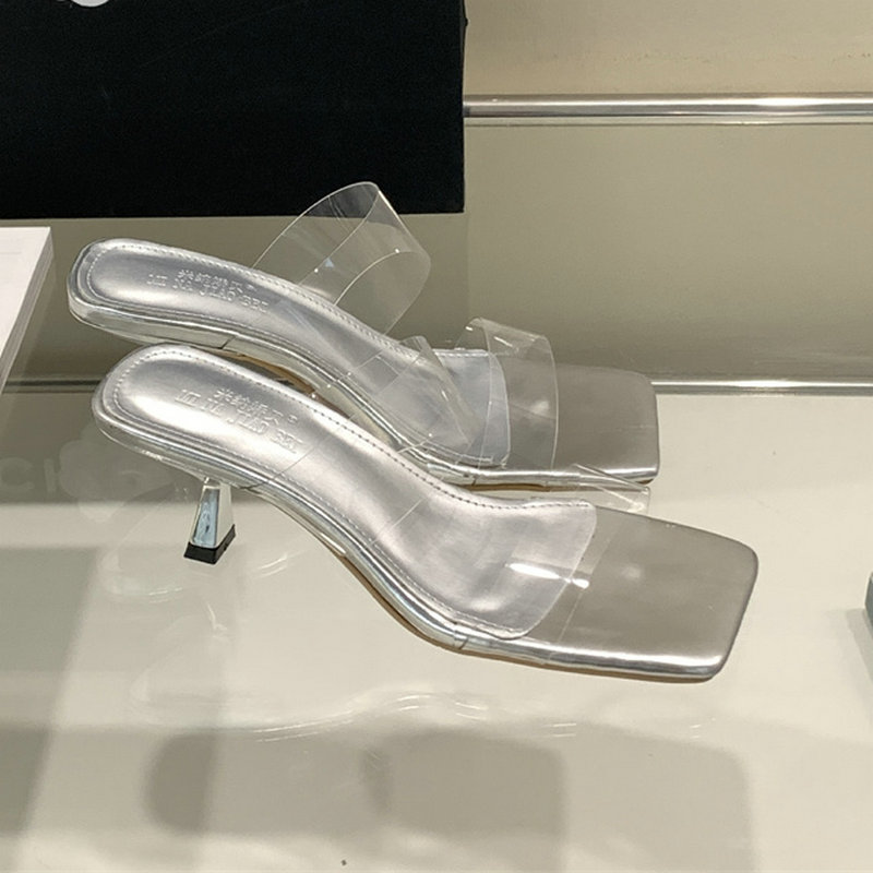夏にぴったり スクエアトゥ ピンヒール スリッパ Chic気質 セクシー クリアー素材 スリッパ サンダル レディース ヒール 美脚効果 オフィスOK