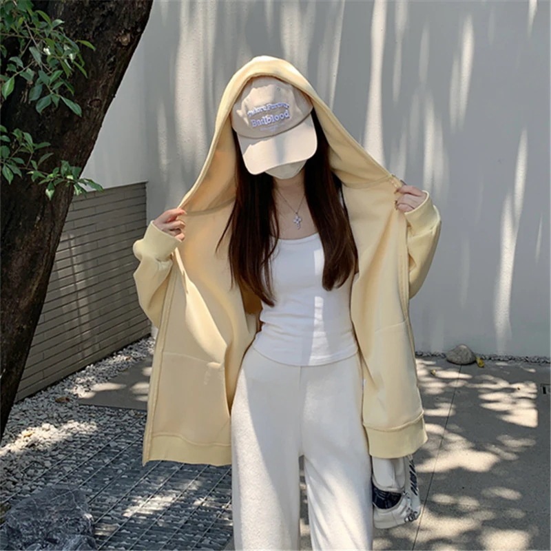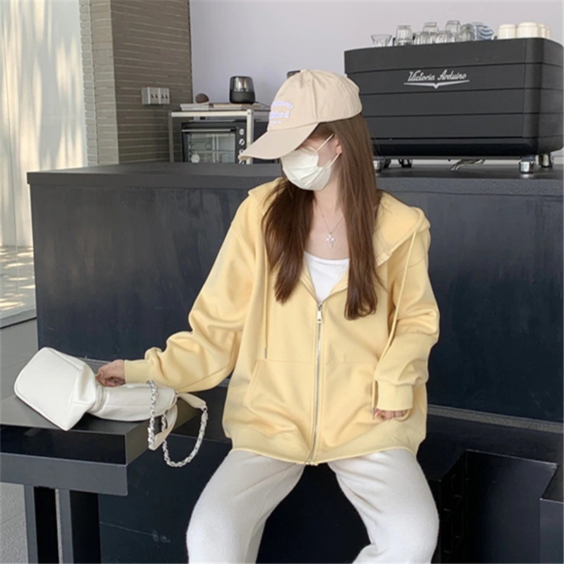 黄色の秋のセータージャケット女性の春と秋の新モデルバーストモデルトップスフード付き初秋の韓国ウェアトップス薄い