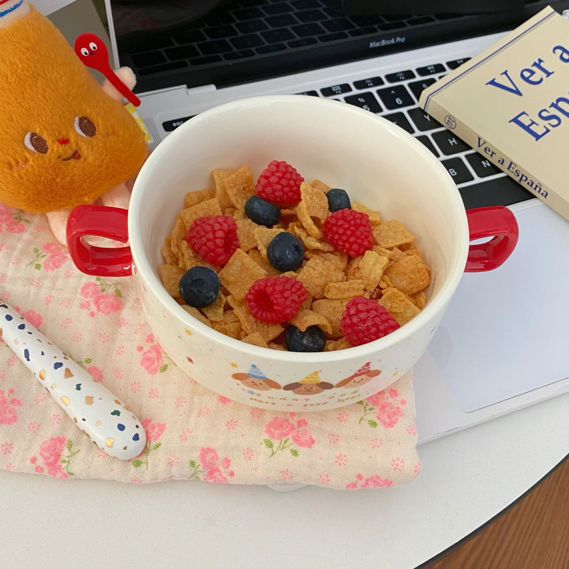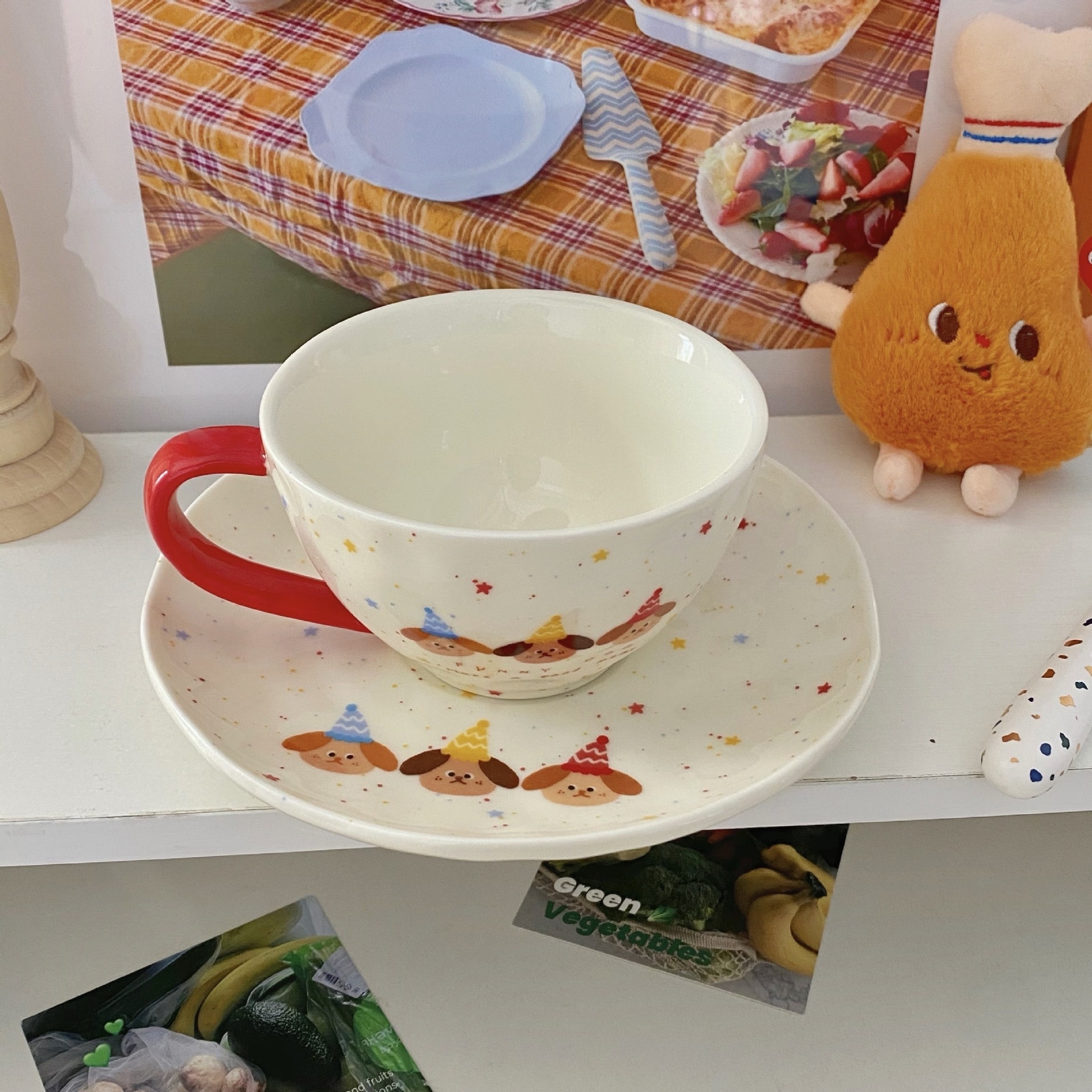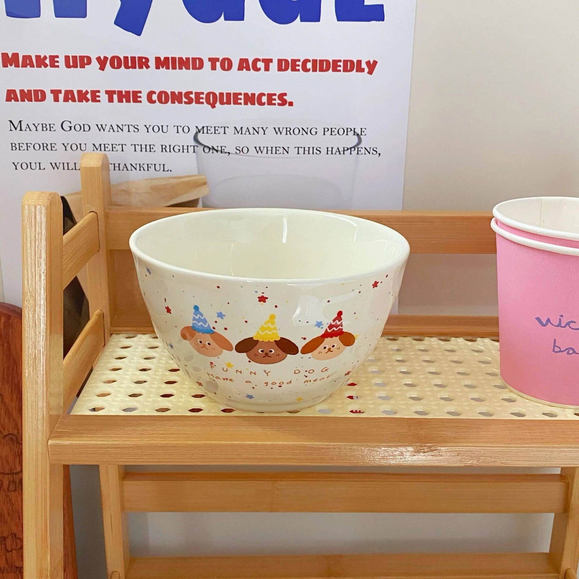 インススタイル韓国スタイル水玉子犬プレート創造的な家庭用野菜プレートコンパートメントディナープレートご飯茶碗かわいいセラミックカップやプレート食器