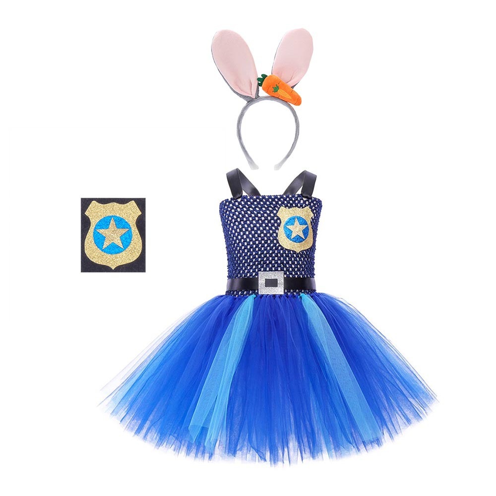 イジーなズートピア将校ジュディパフドレスガールウサギ保安官パフォーマンスドレス
