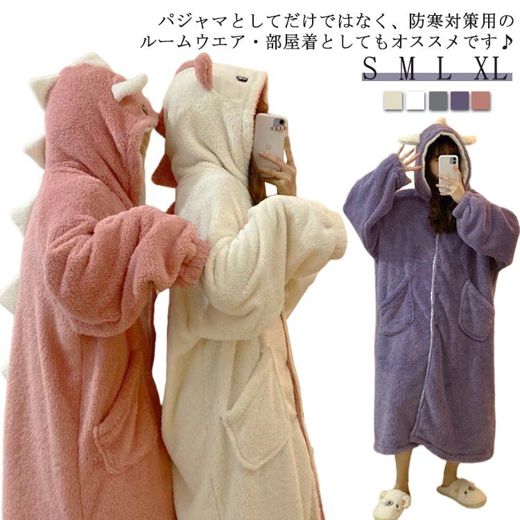 ワンピース ロング 用 着る毛布 パジャマ 部屋着 恐竜 怪獣 サメ 鮫 フード付き パーカー レディース カーディガン ウェア 着ぐるみ ふわふわ ガウン フリース アニマル 長袖 寒さ対策